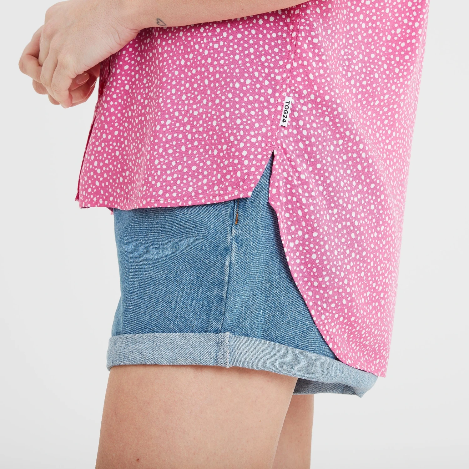 Cool and comfortable, our Alston supersoft short sleeve shirt is easy to wear with jeans, shorts or a skirt for any occasion. This lightweight, casual shirt drapes beautifully and has dropped armholes for a relaxed fit. The flattering cap sleeves have turn-ups that will stay in place and there are pleats at the back and split vents at the hem for ease of movement. Alston was designed by our team in West Yorkshire in colours and patterns inspired by a fun day out at Whitby Bay and is finished with a patch pocket on the chest, small, branded buttons down the front and discreet woven TOG24 labels on the side seam and at the hem opening.