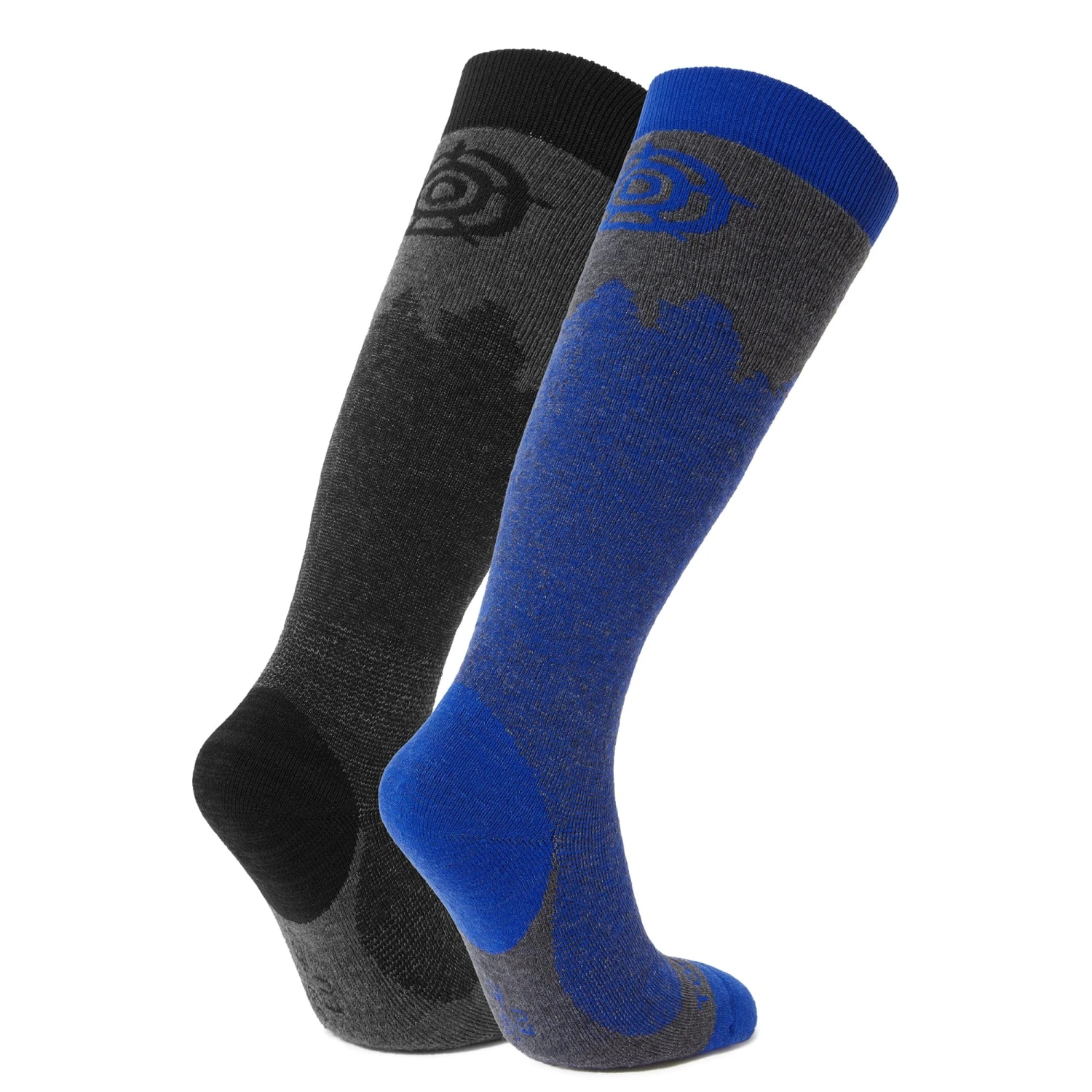If you want to ski in comfort then you need a pair of our Aprica Ski Socks. These sumptuous socks feature heavy cushioning, which means there’s padding right the way around the sock making these perfect for anyone who wants to ensure total protection for thier feet. You can be sure that rubbing and blistering will be kept to a minimum, so you can focus on the slopes ahead. These socks are made from a merino fabric blend and include great features like re-inforced heel and toe areas, elastic support at the ankle and foot arch and a non-slip grip cuff to keep your socks tight against the leg. These socks come in a range of colours and boast a cool Alpine design so you’ll look as good as you feel.