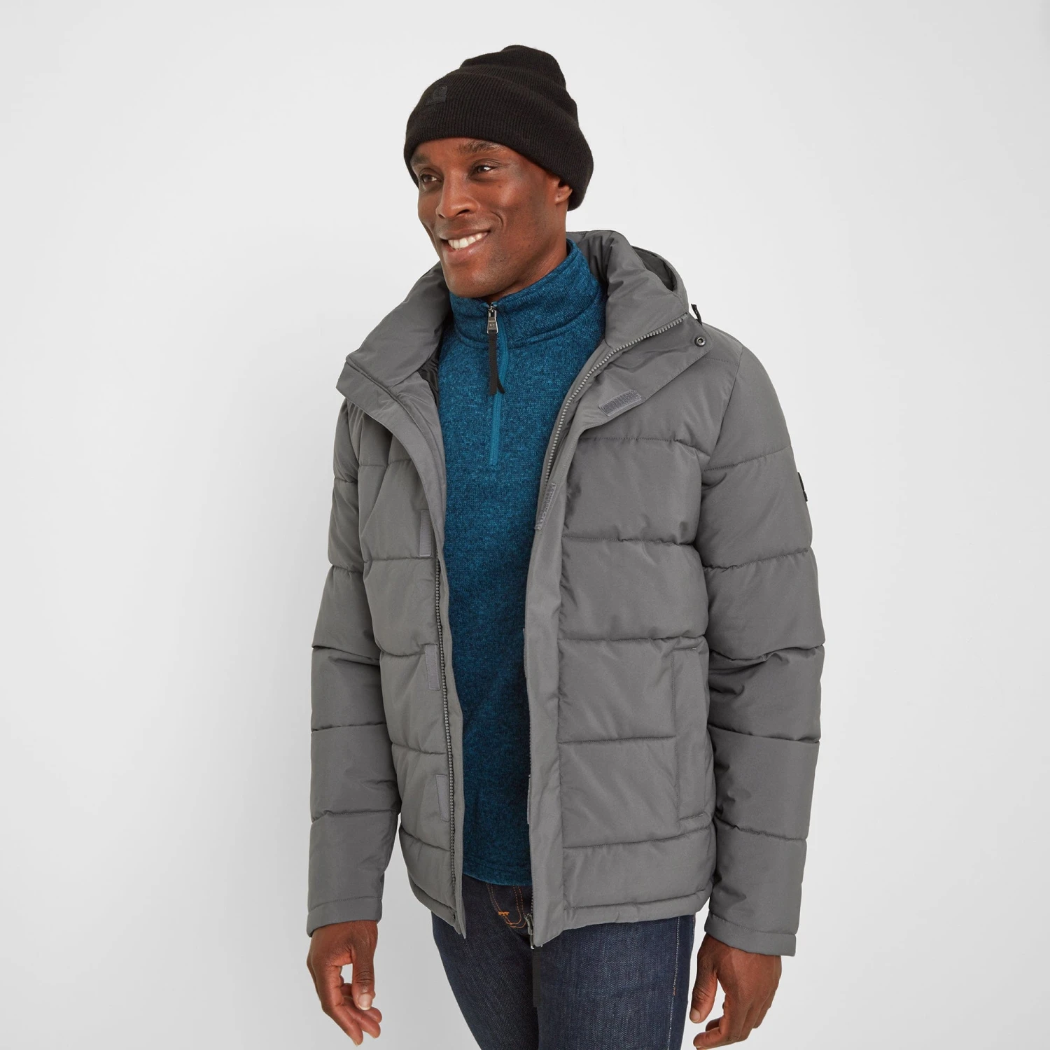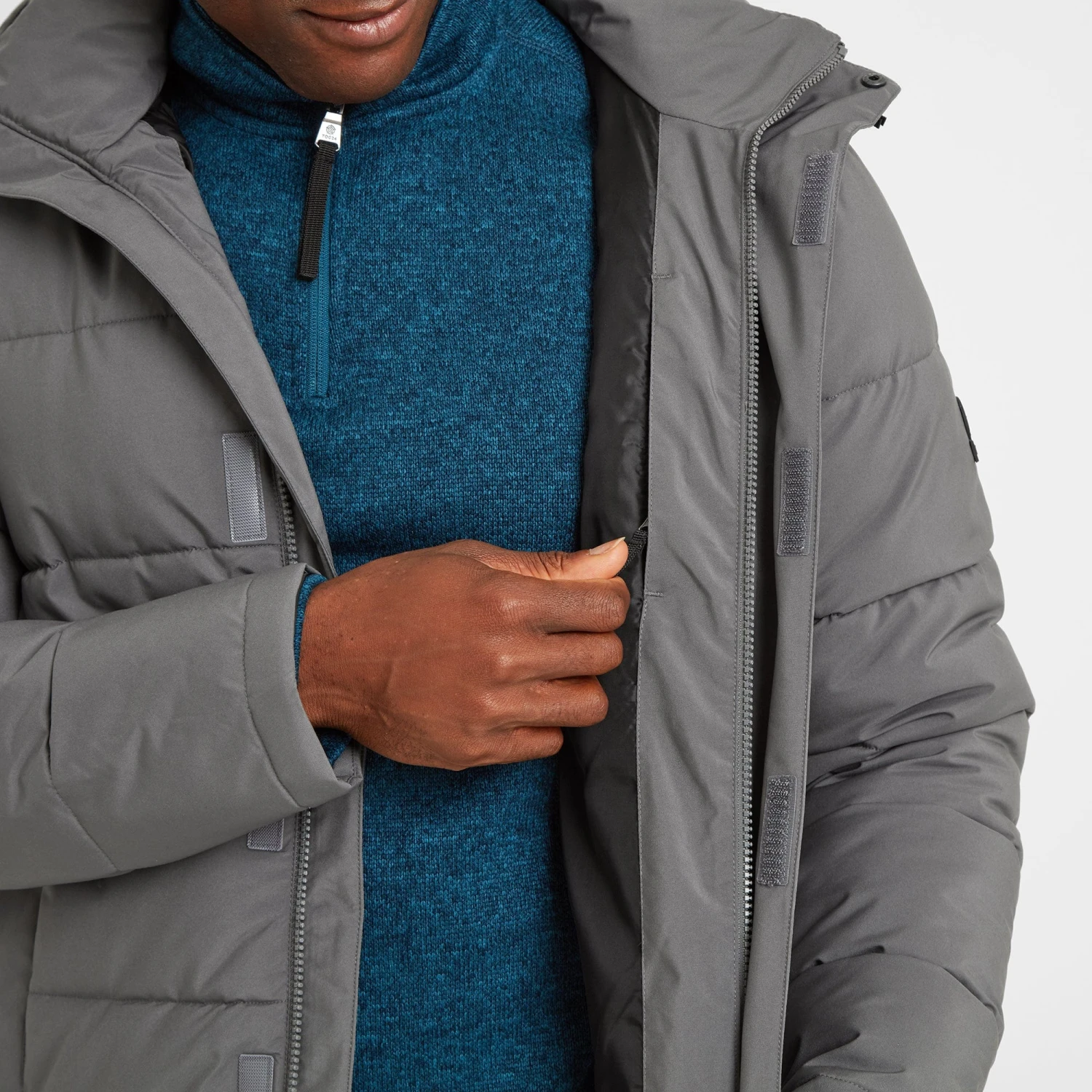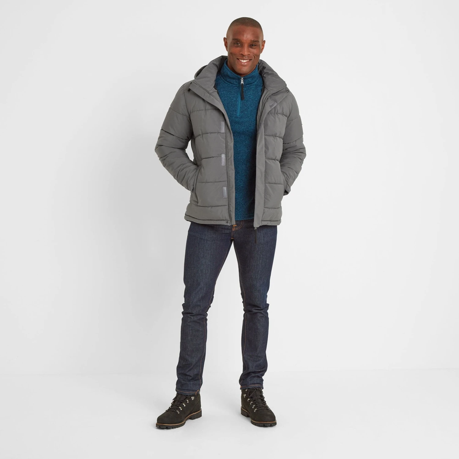 Robust and expertly designed to stand up to chilly Yorkshire winters, our chunky Askham padded jacket is perfect for days when you need to bundle up against the cold. The high performing, hard wearing outer fabric and insulated quilted body and sleeves keeps you incredibly warm and the cosy high neck and fixed, fully adjustable hood provides extra protection against the biting wind. A concealed front zip with press studs and easy Velcro fastening tab give a streamlined finish and a handy inside zip pocket, along with two outside zip pockets with chunky, wide openings, are perfect for securely carrying your wallet, phone and keys. Askham is finished with a silky taffeta lining, making it easy to slip on and off, and an embossed rubber Yorkshire Rose badge on the sleeve, heralding our Truth over Glory ethos.
