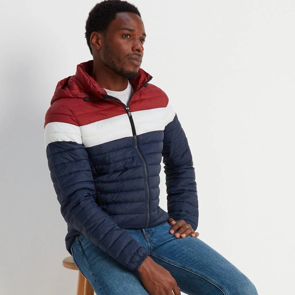 Lightweight, wind resistant and warm, our Bowburn quilted jacket is buttery soft and gives you warmth without adding bulk; so it’s perfect for everything from a walk across the moors, a trip into town, or to take on your travels as it folds down small and springs back into shape when you need it. This distinctive and versatile jacket comes in bold horizontal stripes in jewel colours inspired by the rugged Yorkshire landscape at sunset. The thermal filling is made from recycled plastic bottles, so you’ll be doing your bit to protect the environment too. Bowburn has a cosy inner collar for added comfort and a fixed, insulated hood with toggle adjusters. There are two handy zip up pockets and a full length, easy pull zip at the front. The finishing touch is our iconic embossed rubber Yorkshire Rose badge on the sleeve.