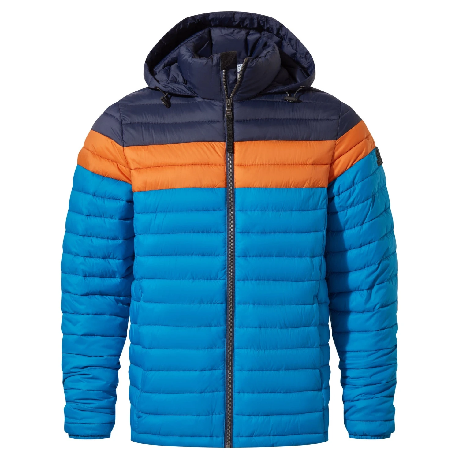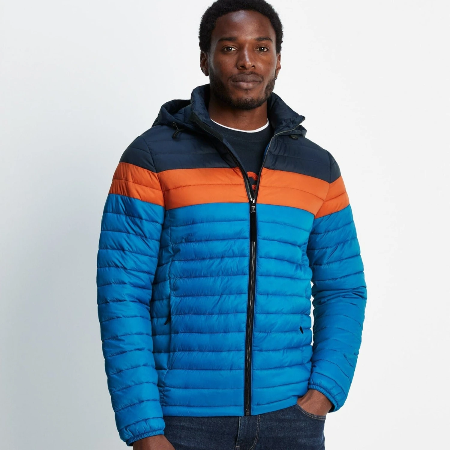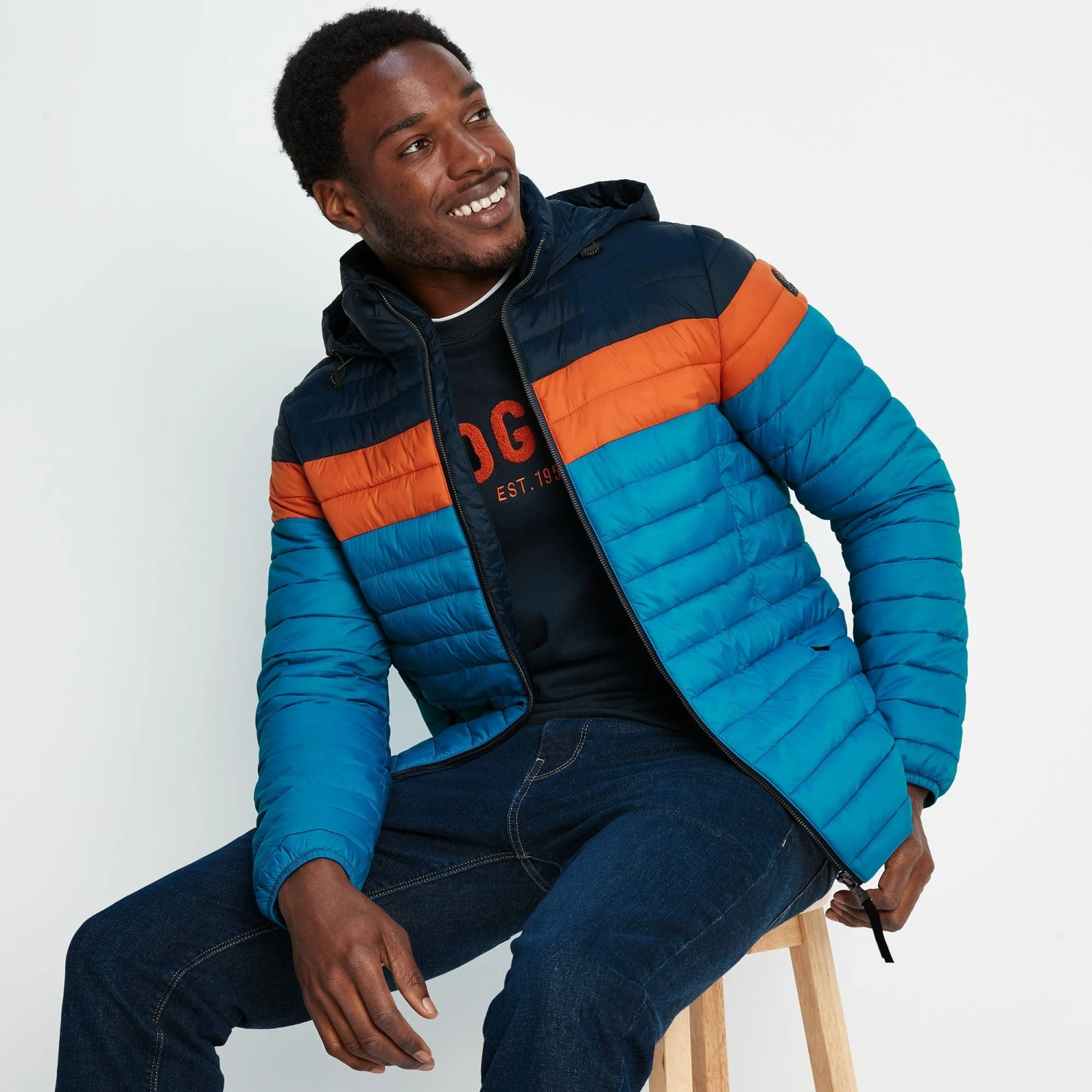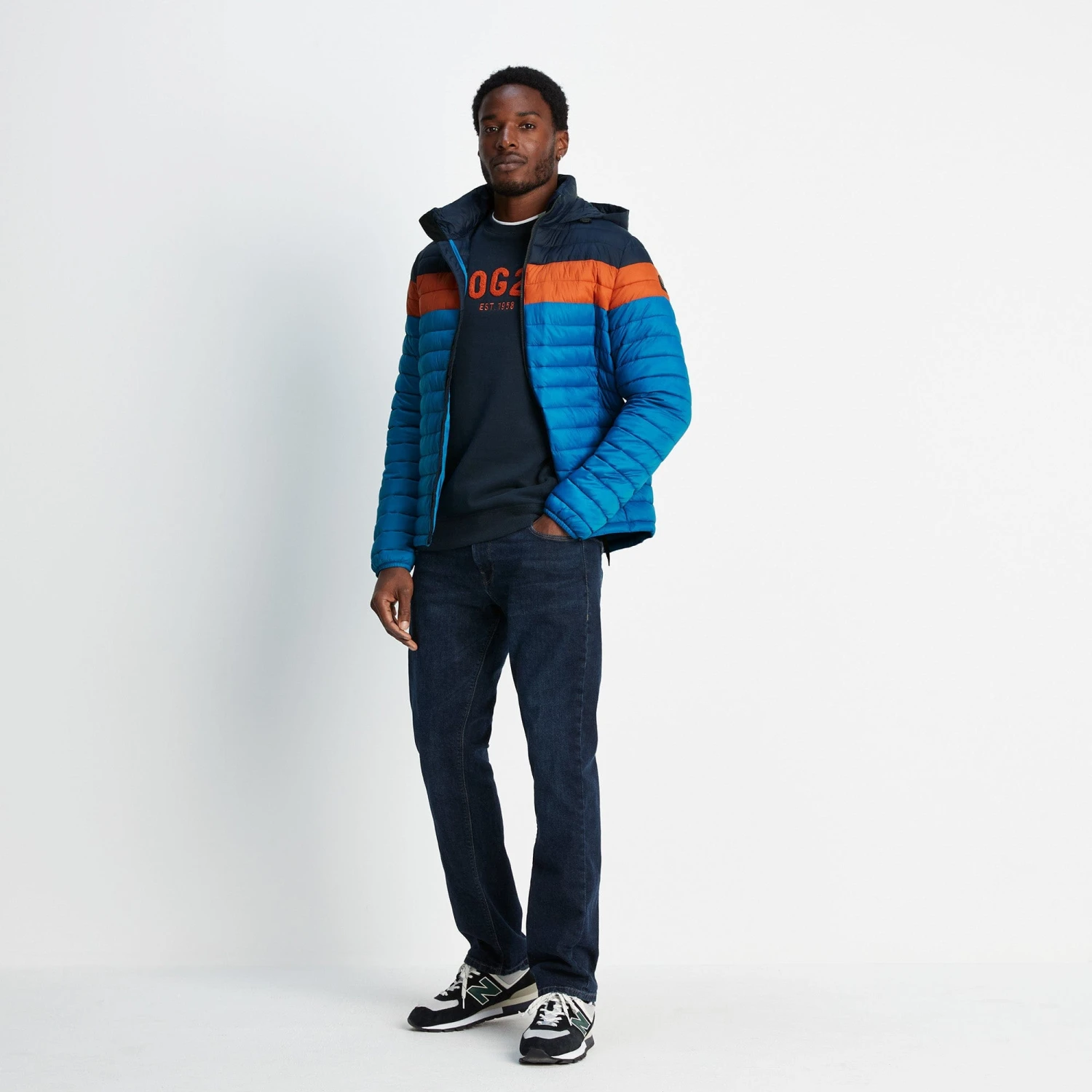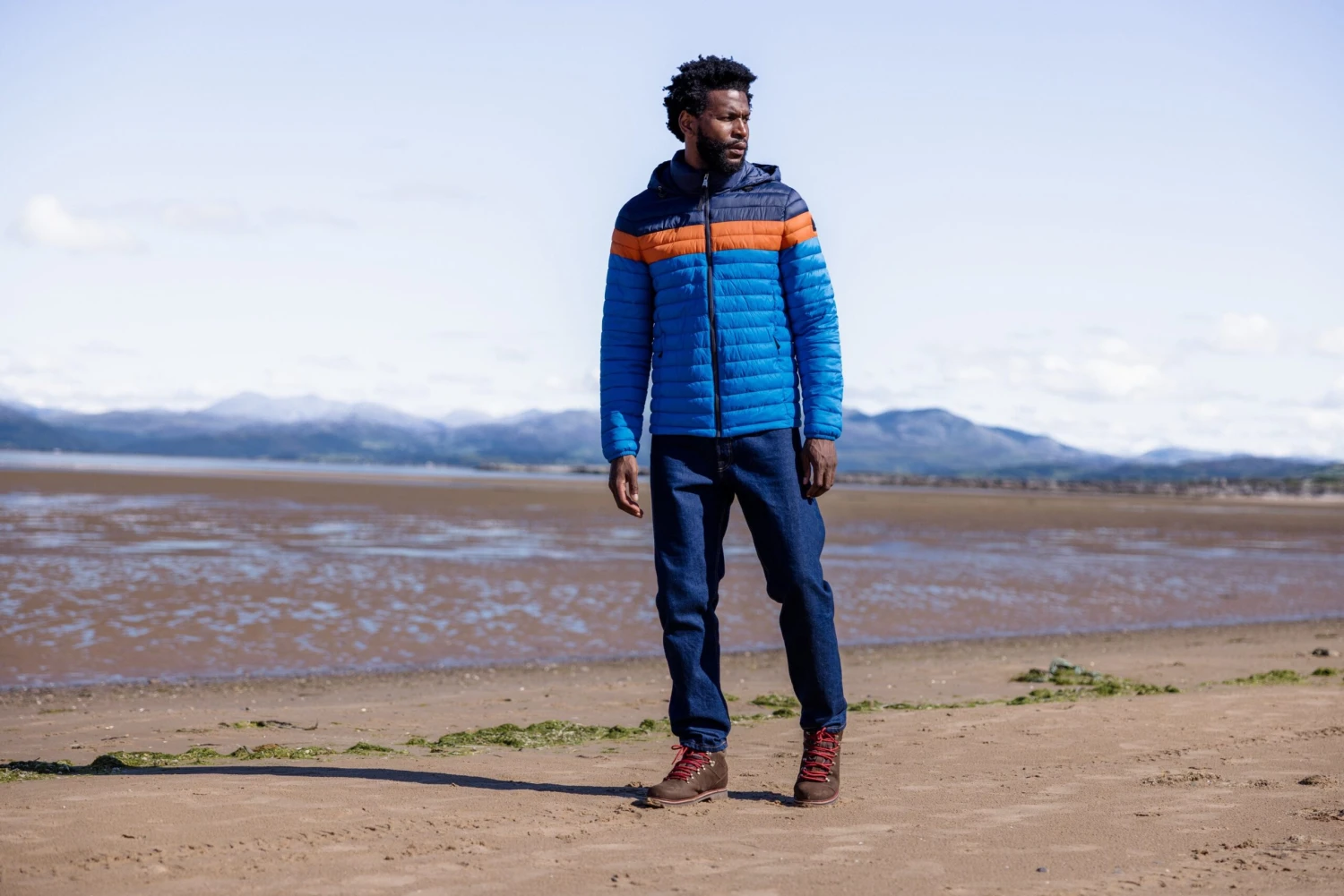 Lightweight, wind resistant and warm, our Bowburn quilted jacket is buttery soft and gives you warmth without adding bulk; so it’s perfect for everything from a walk across the moors, a trip into town, or to take on your travels as it folds down small and springs back into shape when you need it. This distinctive and versatile jacket comes in bold horizontal stripes in jewel colours inspired by the rugged Yorkshire landscape at sunset. The thermal filling is made from recycled plastic bottles, so you’ll be doing your bit to protect the environment too. Bowburn has a cosy inner collar for added comfort and a fixed, insulated hood with toggle adjusters. There are two handy zip up pockets and a full length, easy pull zip at the front. The finishing touch is our iconic embossed rubber Yorkshire Rose badge on the sleeve.