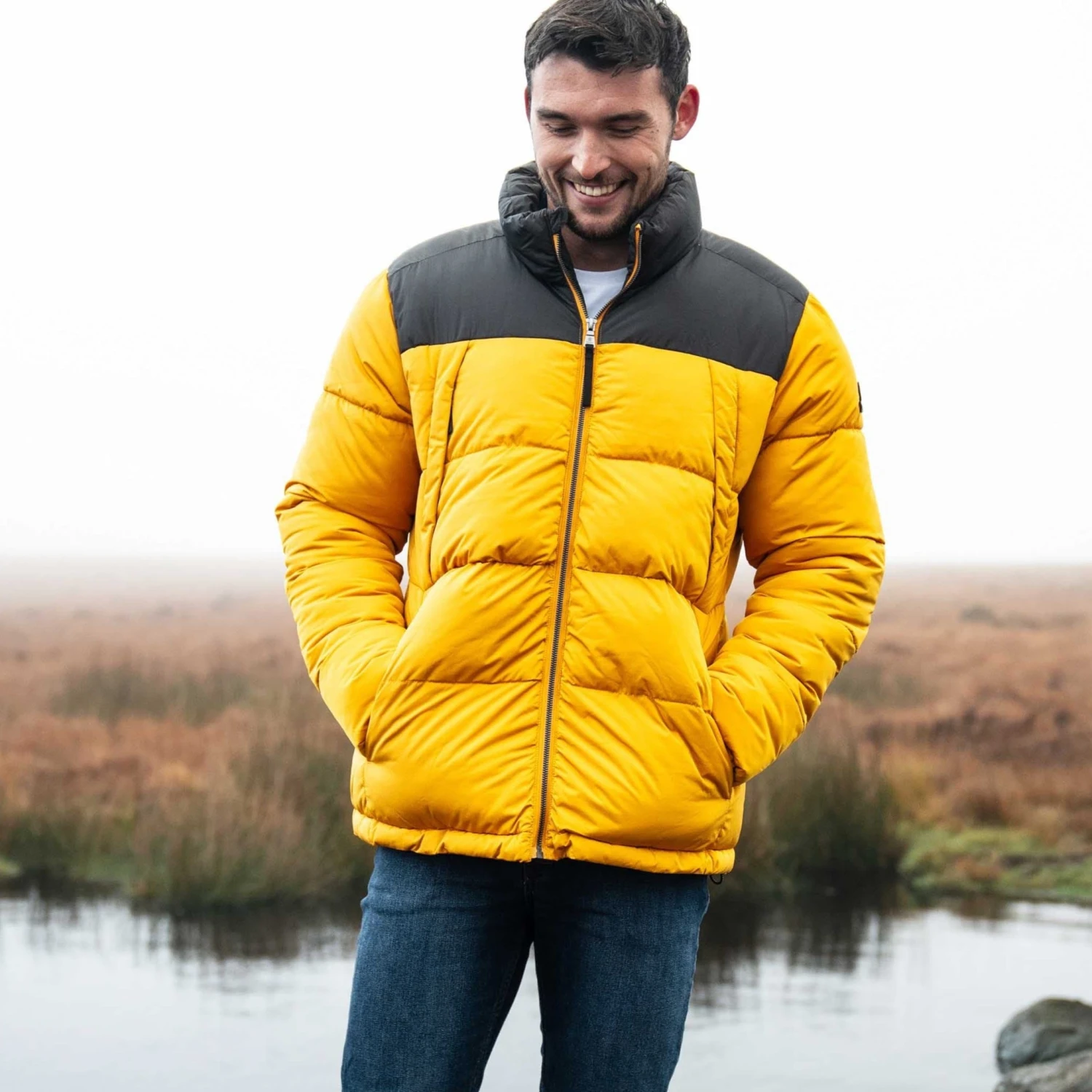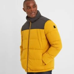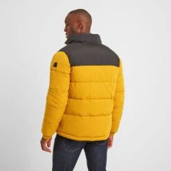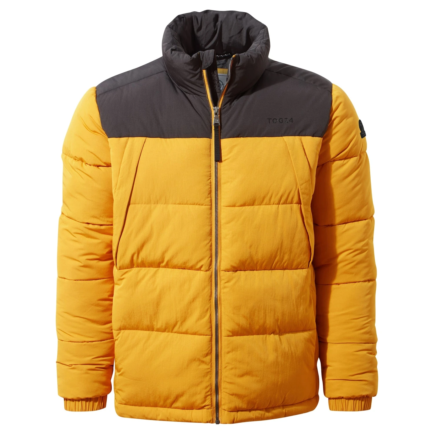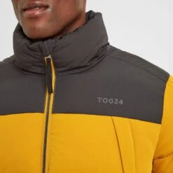 Designed to stand up to the rigours of a Yorkshire winter, our Calverley quilted puffer jacket is wind resistant and extra warm. This substantial jacket with chunky, stitched baffles is thickly padded with a warm, insulated eco filling made from recycled plastic bottles, so you’ll be doing your bit for the planet too. Elasticated cuffs and toggle adjusters at the hem keep the wind out and the warmth locked in and two lower zip-up pockets can double up as hand warmers. Calverley also has two angled zip up chest pockets to safely store your valuables when you’re out for a hike across the moors. Calverley comes in muted colours inspired by the rugged Yorkshire coastline and has a contrast colour neck and yoke for added interest. The finishing touch is a TOG24 printed logo on the chest and our signature TOG24 rose rubber badge on the sleeve.