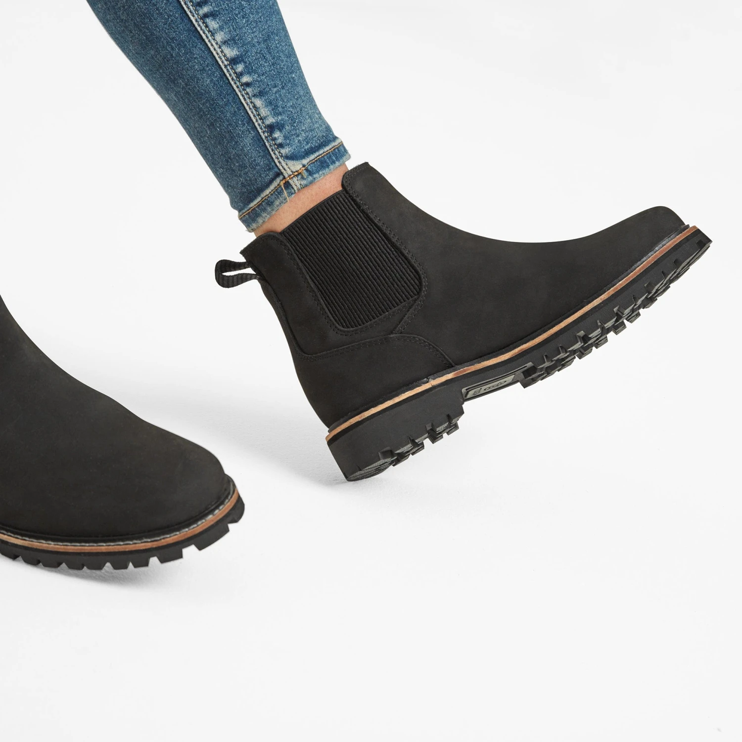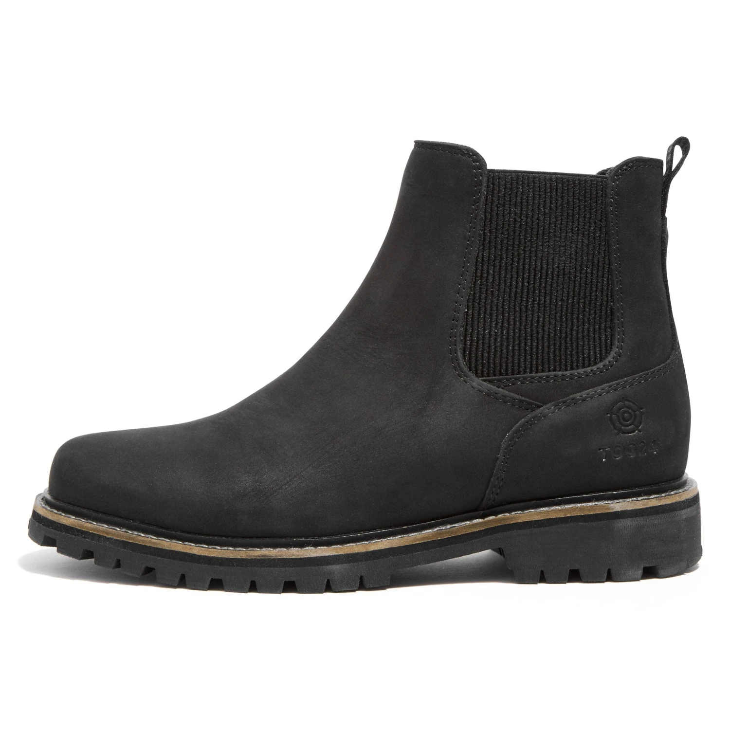 Designed here in Yorkshire in response to numerous customer requests, our Canyon Chelsea Boots are the perfect combination of style, comfort and practicality. They look great with jeans, but come with a host of features that make them so much more than just a fashion statement. The uppers are made from waterproof leather, so you don’t need to worry about wearing them in the rain, walking over dew-soaked grass or even stepping in a shallow puddle. Inside is a moulded foam sole that gives incredible comfort whether you’re going on a long walk or just standing around for long periods. The outer sole is a grippy rubber that keeps you sure-footed even on uneven pathways, and it has deep cleats to help prevent you slipping on wet mud. Well made with a welted construction, they have heavy duty stitching all around. They’re easy to put on too, with elasticated sides and a pull loop at the back to hold on to. They’re finished with the iconic TOG24 Yorkshire rose embossed on the heel and sole.