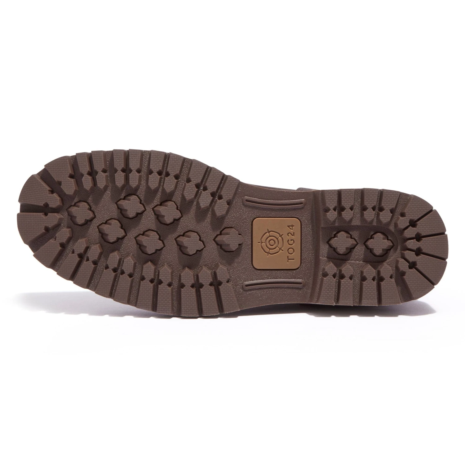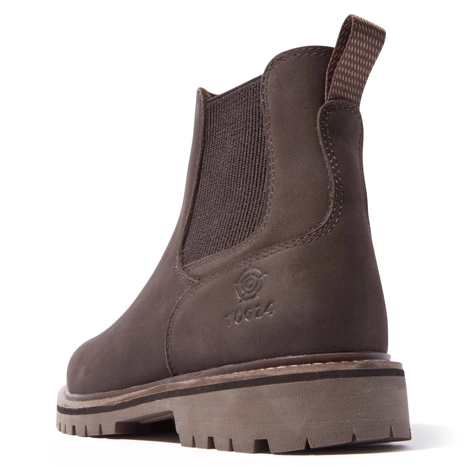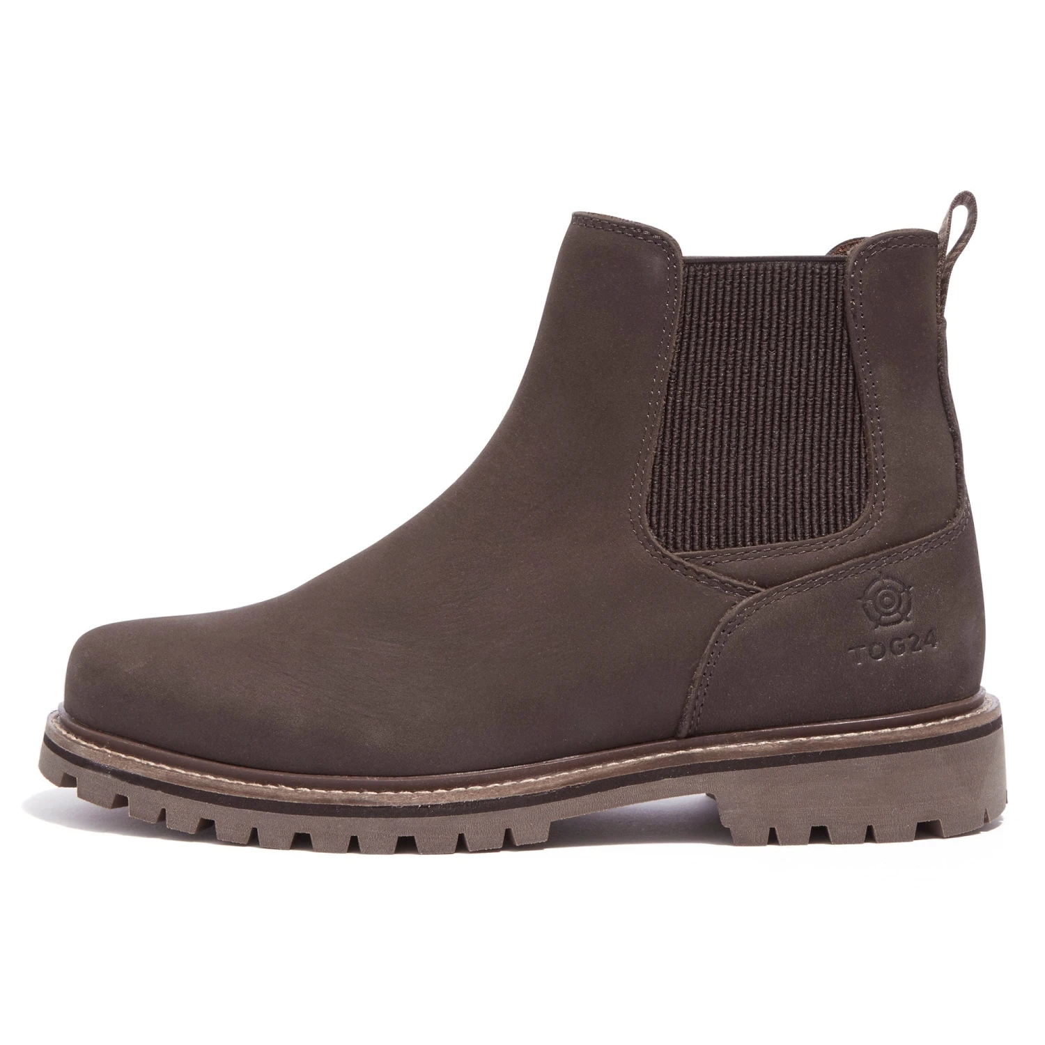 Designed here in Yorkshire in response to numerous customer requests, our Canyon Chelsea Boots are the perfect combination of style, comfort and practicality. They look great with jeans, but come with a host of features that make them so much more than just a fashion statement. The uppers are made from waterproof leather, so you don’t need to worry about wearing them in the rain, walking over dew-soaked grass or even stepping in a shallow puddle. Inside is a moulded foam sole that gives incredible comfort whether you’re going on a long walk or just standing around for long periods. The outer sole is a grippy rubber that keeps you sure-footed even on uneven pathways, and it has deep cleats to help prevent you slipping on wet mud. Well made with a welted construction, they have heavy duty stitching all around. They’re easy to put on too, with elasticated sides and a pull loop at the back to hold on to. They’re finished with the iconic TOG24 Yorkshire rose embossed on the heel and sole.