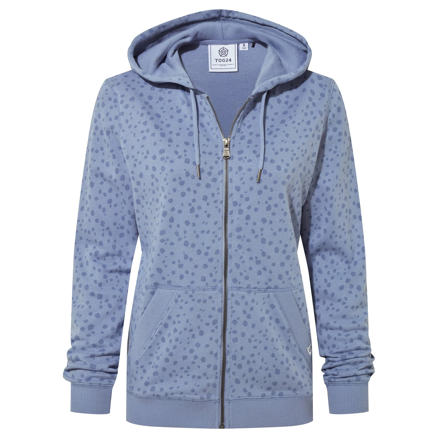 A perfect cover-up when there’s a chill in the air, our Carys zip up hoody for women has a distinctive Dalmation-inspired print all over the body and generous ribbing at the cuffs and hem. This versatile layer features a supersoft loopback finish inside, so it feels extra soft and cosy against the skin. For comfort from head to toe, pair with joggers or leggings and wear to stroll around town with friends, take the dog for a stretch in the park, or enjoy a brisk walk across the Yorkshire Moors. Designed by the our team in West Yorkshire, every attention has been paid to detail. The cosy hood can be worn up or down, and can be tightened with the knitted drawcords to cocoon your head and neck in warmth and softness. There’s even a place to keep your hands warm or carry your essentials thanks to the spacious front pockets with ribbed edges. The finishing touch is a discreet TOG24 woven label on the pocket opening.