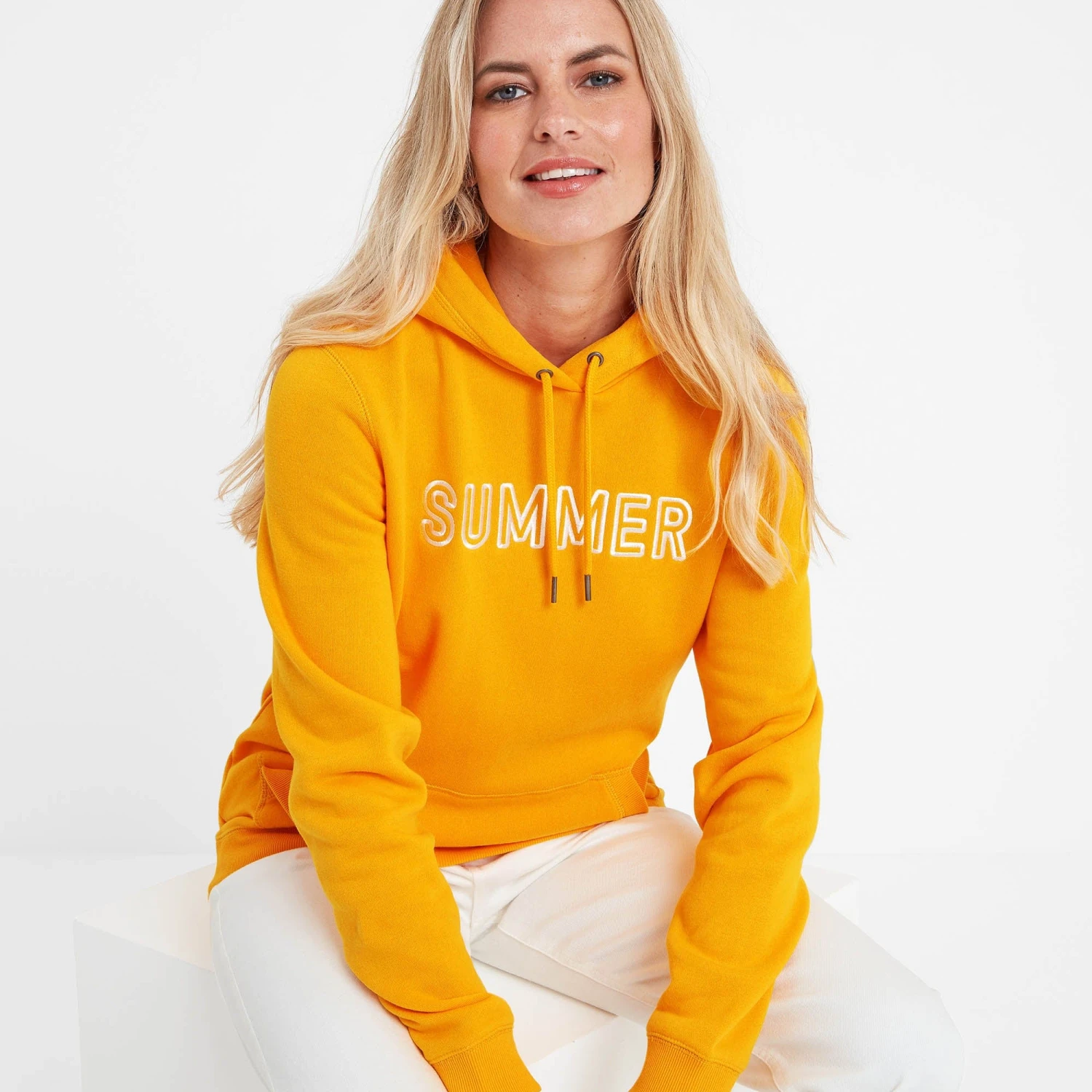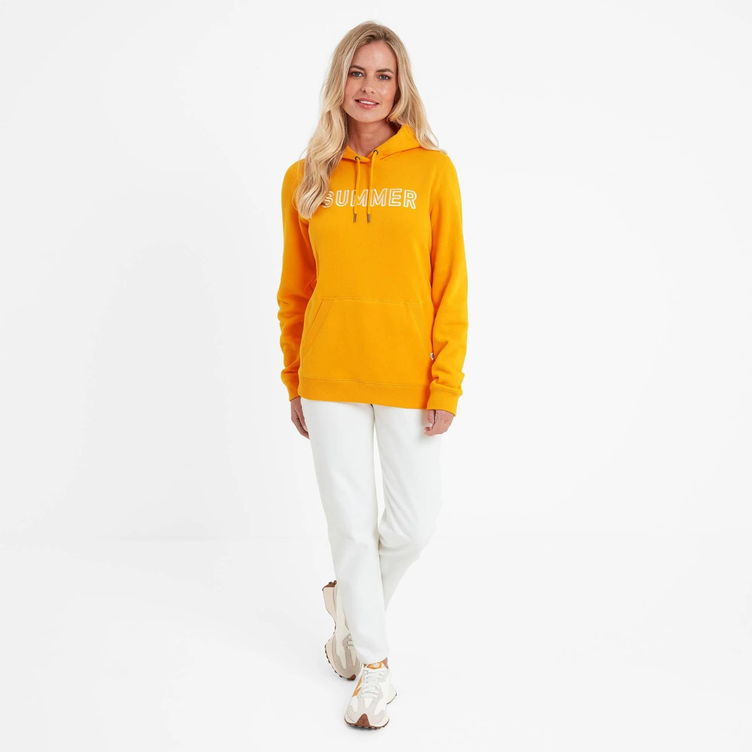 Keeping things casual, our Chrissie is a super soft women’s hoody perfect for days when you need a little extra warmth. Bold and bright with ‘summer’ embroidered across the chest, this relaxed style staple looks great worn with denim shorts, jeans or leggings. A convenient kangaroo-style pocket at the front gives you a place to store keys and coins, or delve your hands inside and keep them warm when the air is more breezy than balmy. A perfect extra layer when you want to take the dog for a walk or pick up a pint of milk, the cosy hood has drawcords so you can easily pull it tight around your head should the weather take a turn for the worse. Finished with generous ribbing on the cuffs and hem, and a discreet TOG24 woven label on the edge of the front pocket, every detail has been thought about by our team in West Yorkshire, where this hoody was designed.