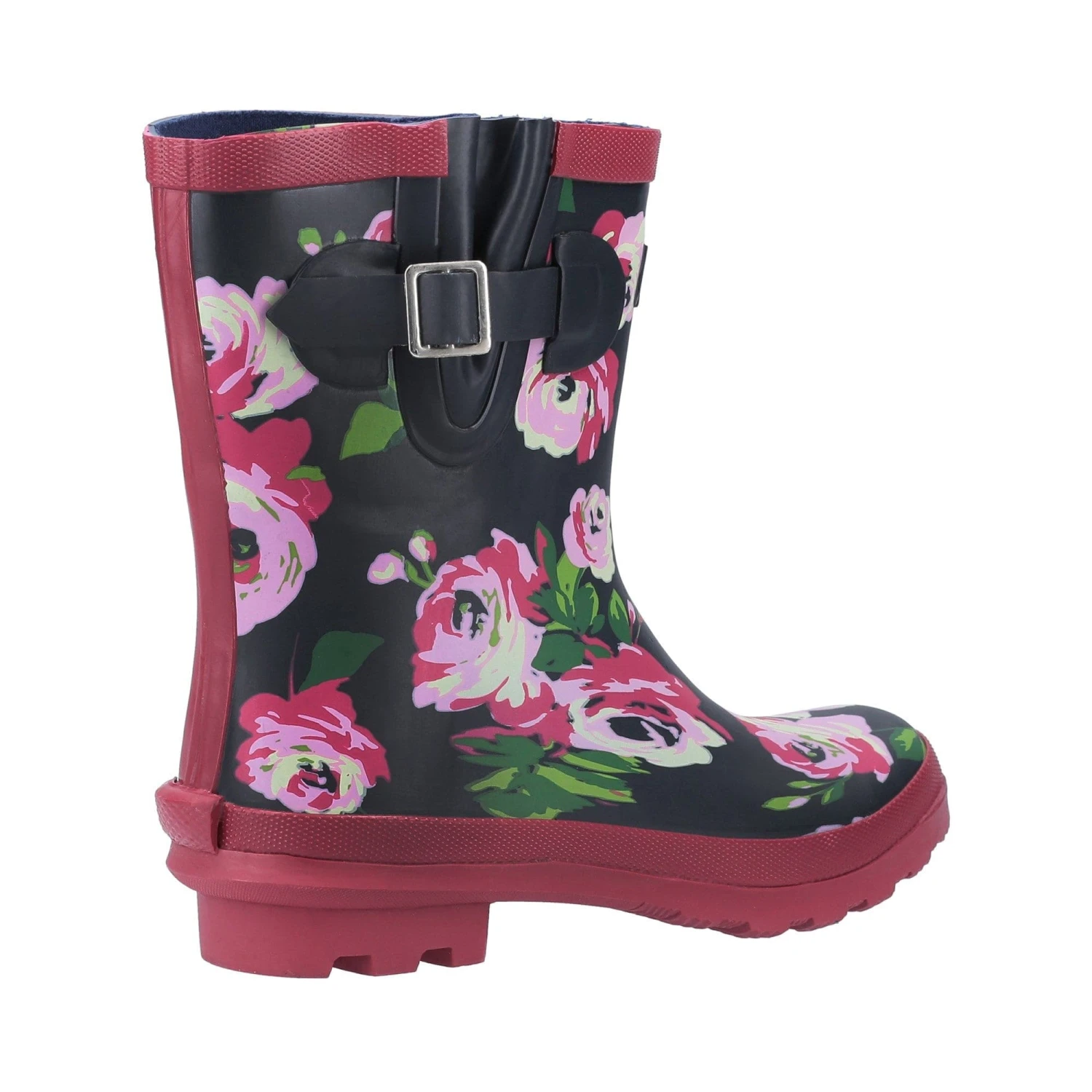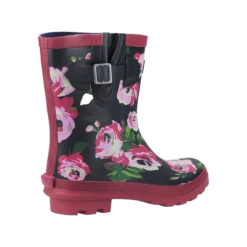 Women’s mid height boot with extra-fit adjustment at the calf. Fully waterproof rubber upper with colourful printed pattern. Practical cleated sole with stylish chunky 25mm heel. An ideal women’s festival welly, gardening boot or for walking the dog.