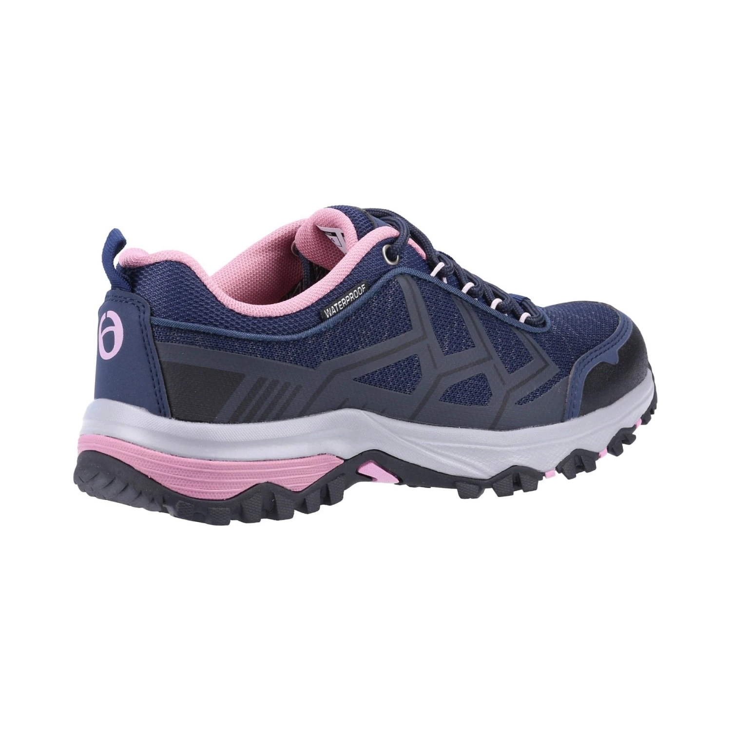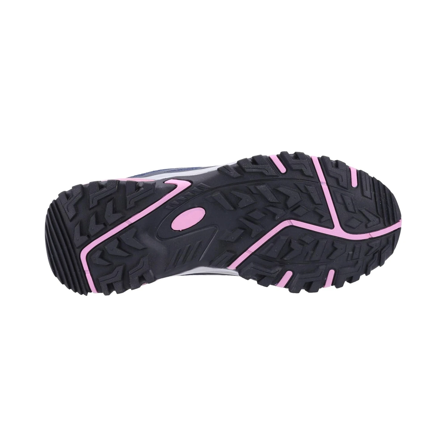 This ladies hiking trainer has superior grip for muddy trails. The upper is eco-conscious being made from 85% of rPET (recycled plastic bottles). Included speed lacing hooks and waterproof membrane.