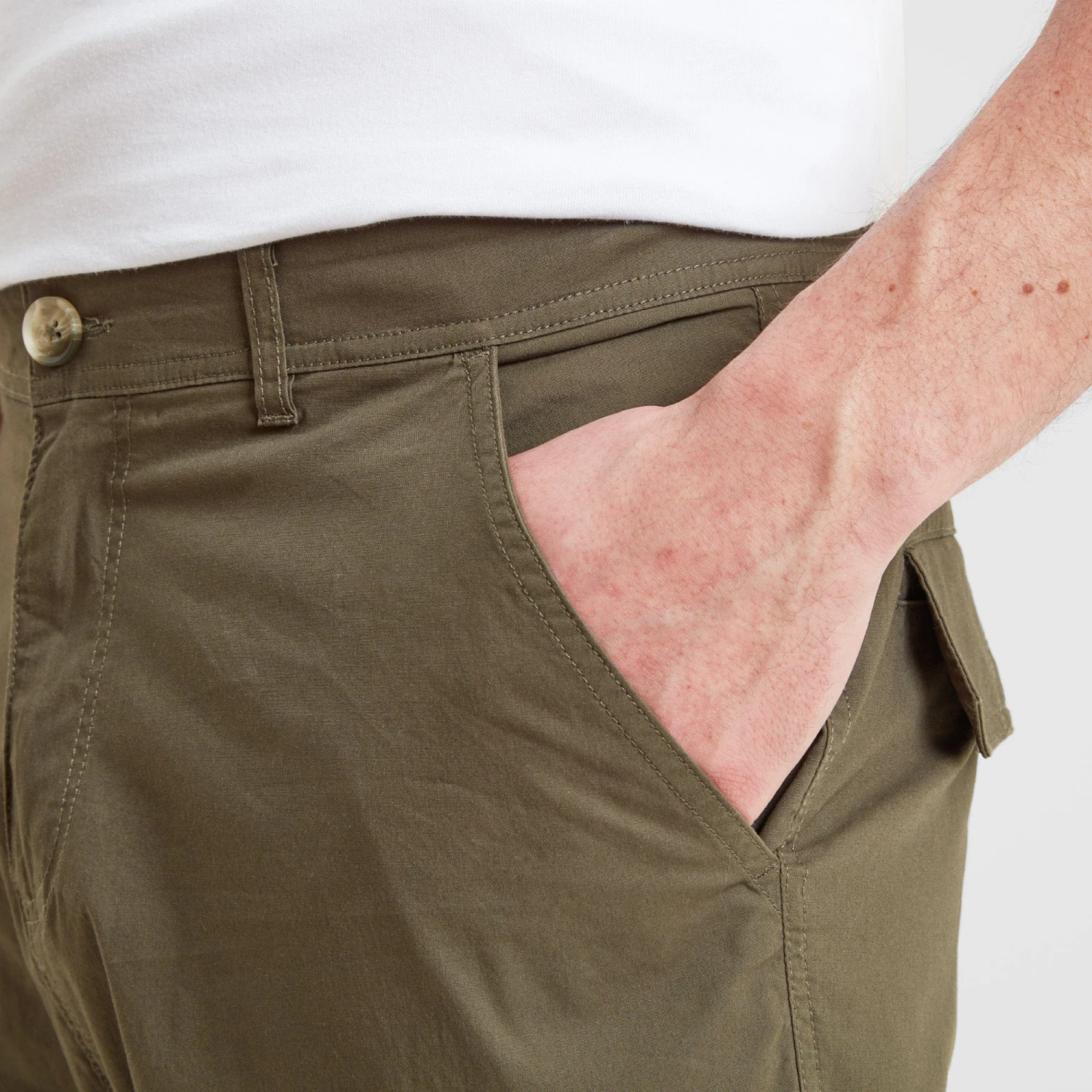 The more you wash and wear our Dibden men’s cargo pants, the better they’ll look. These lightweight trousers come in a supersoft cotton that feels as good on as it looks and the top stitch detailing to reinforce the seams means that they are also hard wearing, making them perfect for outdoor adventures. Proudly designed by our team in West Yorkshire with every attention paid to detail, you’ll find neat darts at the knees to improve movement and plenty of handy pockets, including two at the back secured with press studs to safely store your valuables. Dibden trousers have a classic zip fly opening, secured with a branded button, and the legs are straight for a streamlined look. The finishing touch is a small, woven TOG24 label on the flap of one of the back pockets.