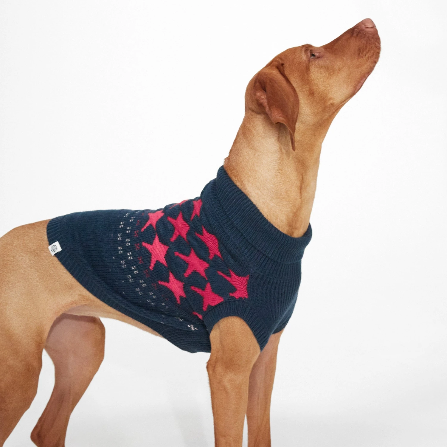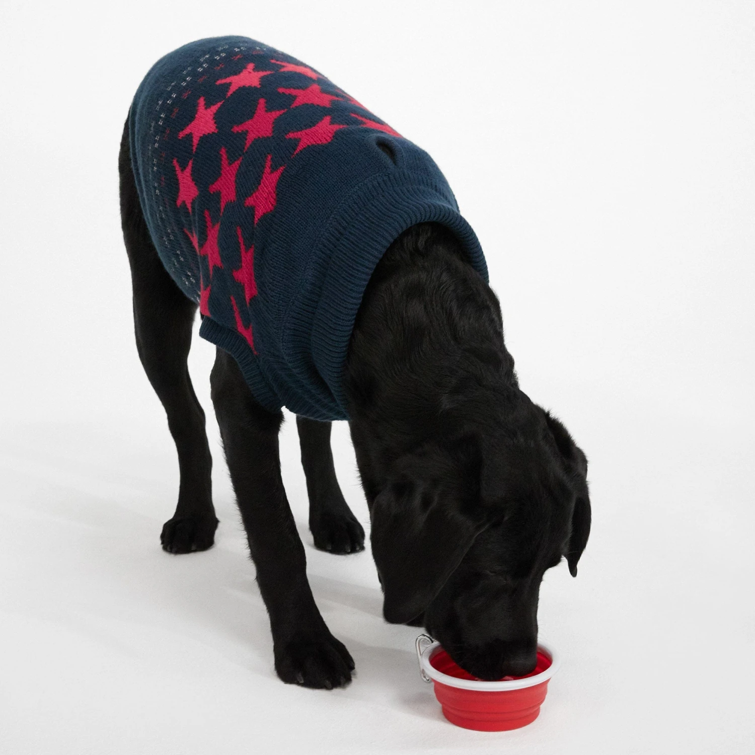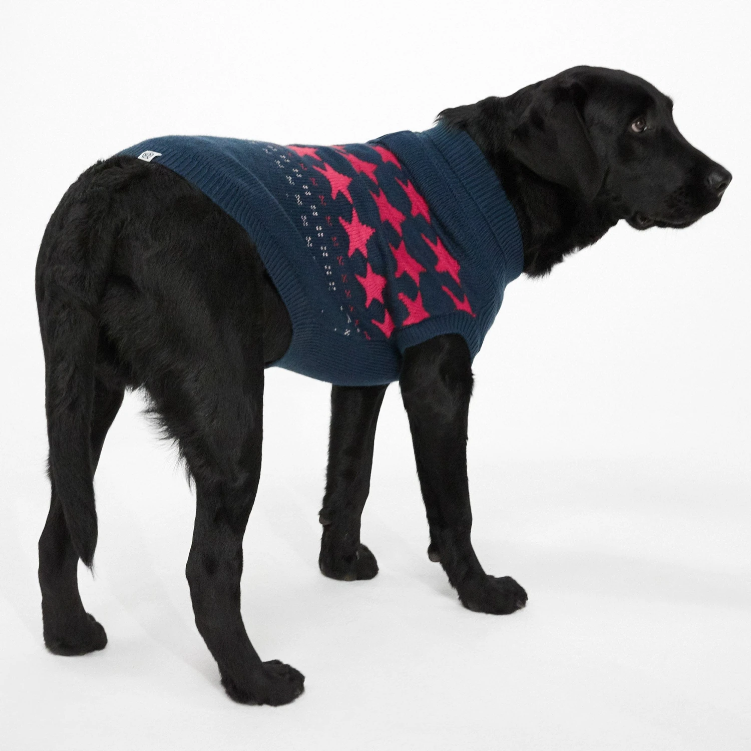 Keep your dog cosy and warm while looking fantastic in our Doodle dog jumper. Coming with a Fairisle-inspired pattern, this wintery dog coat is a great way to keep your dog protected from the elements while looking super smart. With an adorable roll neck hem and a super soft knitted finish, this brilliant little coat is a delight for dogs to wear. Keeping practicality front of mind, there’s also a handy hole for their lead attachment at the back and leg holes to ensure the jumper stays in place while they’re running and playing. An overall stylish number for your little pooch.