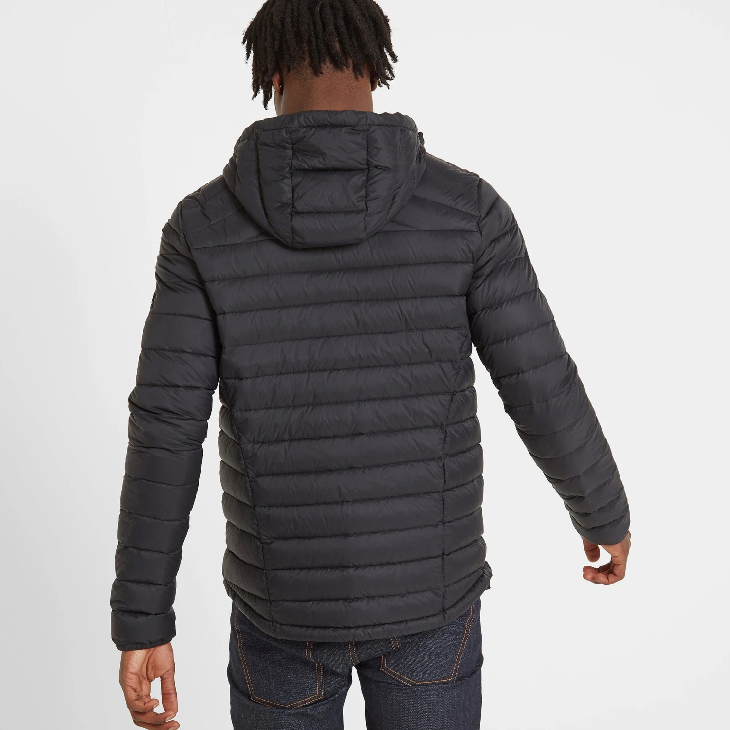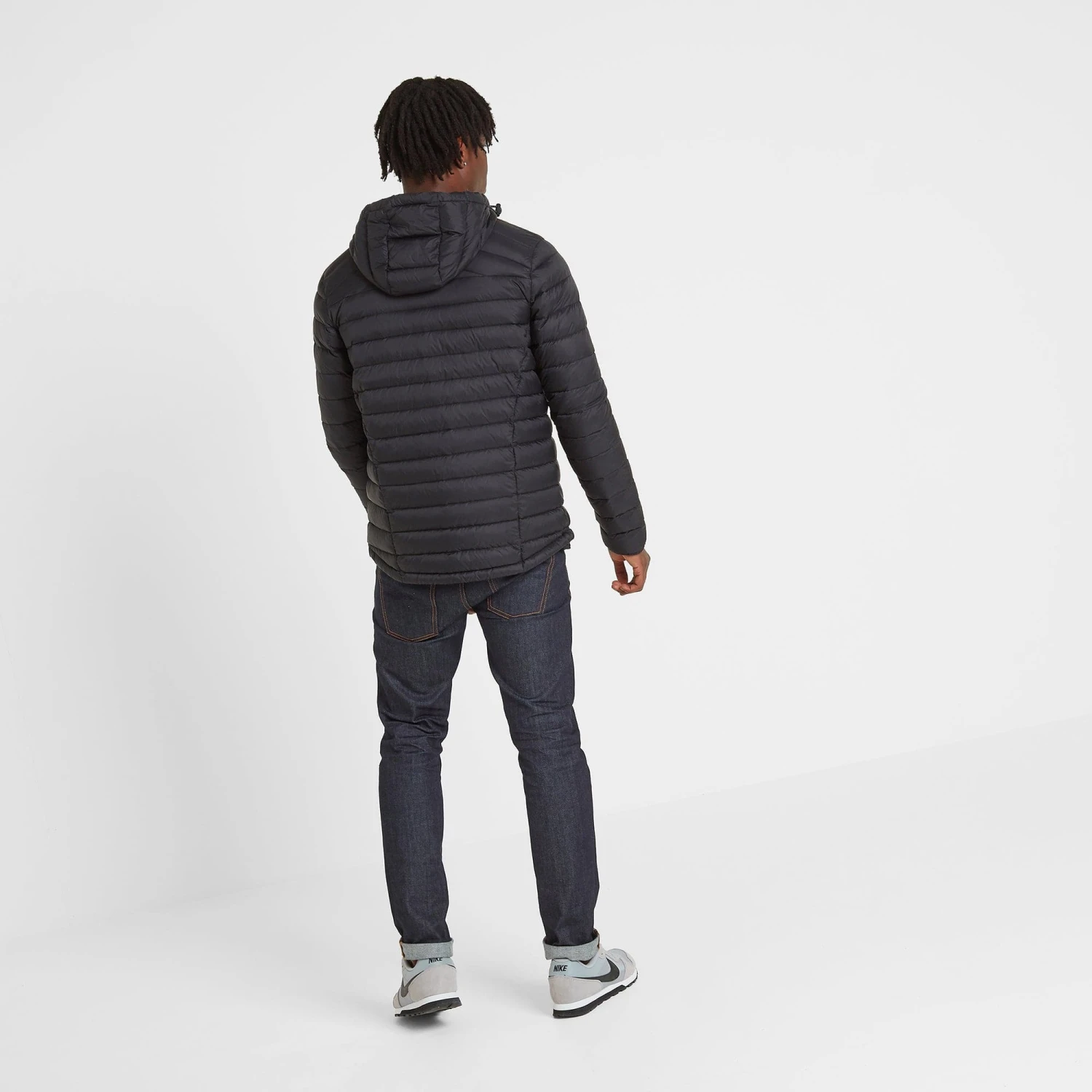 Perfect for adding a layer of warmth without any bulk, our Drax down filled mens jacket with adjustable hood feels silky-soft, incredibly light and packs down small into a zip up inside pocket. You’ll have no trouble finding room for it in your case when you go away, and it also makes a handy travel pillow. This padded jacket gets its incredible warmth from naturally insulating duck down that traps heat without being bulky. Quilted bands, a panelled cut and a hood that hugs your neck mean it feels as good as it looks, and it has thoughtful details like a soft chin cover over the top of the zip. Designed to squish down really small, then spring back into shape, Drax has roomy side pockets protected by an elasticated flap, light elastic at the cuffs and small toggle adjusters at the hem keep the chill out. Designed in Yorkshire, where we always need layers, our Drax mens hooded jacket is ideal for wearing over a top when it’s only a bit chilly or layering under a coat when the wind is h