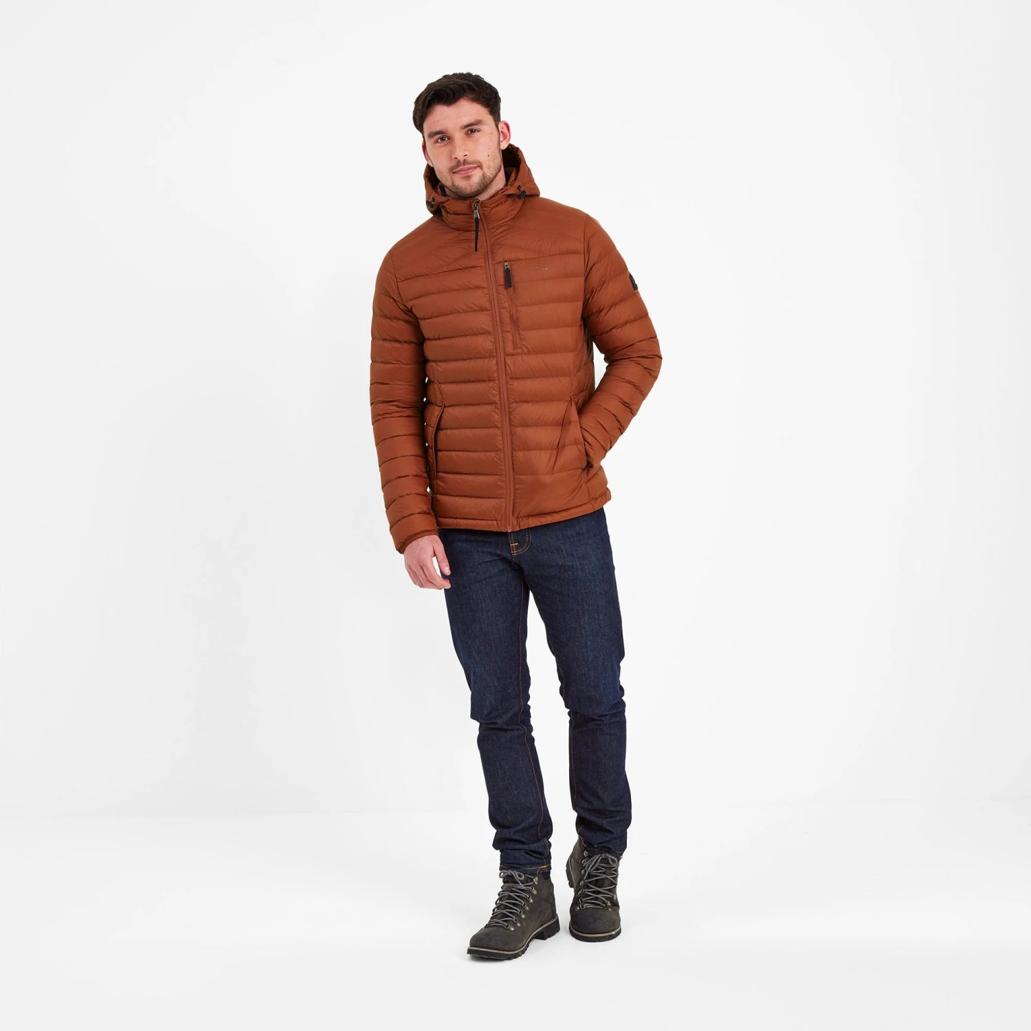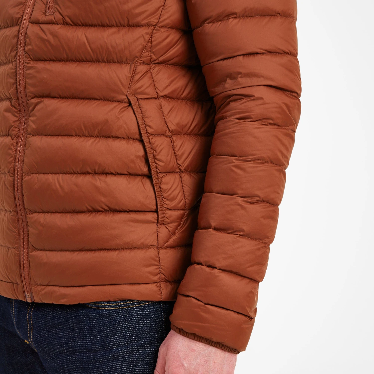 Perfect for adding a layer of warmth without any bulk, our Drax down filled mens jacket with adjustable hood feels silky-soft, incredibly light and packs down small into a zip up inside pocket. You’ll have no trouble finding room for it in your case when you go away, and it also makes a handy travel pillow. This padded jacket gets its incredible warmth from naturally insulating duck down that traps heat without being bulky. Quilted bands, a panelled cut and a hood that hugs your neck mean it feels as good as it looks, and it has thoughtful details like a soft chin cover over the top of the zip. Designed to squish down really small, then spring back into shape, Drax has roomy side pockets protected by an elasticated flap, light elastic at the cuffs and small toggle adjusters at the hem keep the chill out. Designed in Yorkshire, where we always need layers, our Drax mens hooded jacket is ideal for wearing over a top when it’s only a bit chilly or layering under a coat when the wind is h