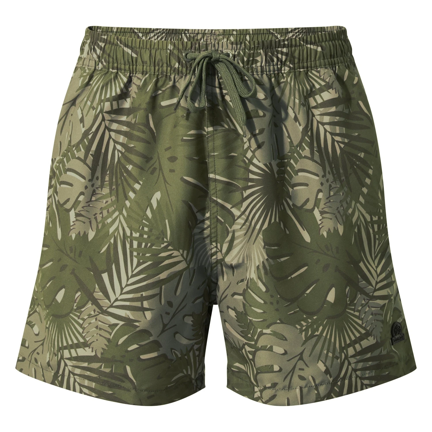 Bright and tropical, our Elmur swimshorts come in 100% recycled polyester and have a supersoft, inner mesh brief for comfort. The comfort story continues with the stretchy elasticated waist with a drawcord for a snug, custom fit. There are two angled pockets on the hip and a back pocket too that are ideal for storing your valuables when you’re between swims. These eye-catching board shorts were designed by our team in West Yorkshire in a tropical print in colours inspired by the natural beauty of the Yorkshire landscape and the rugged coastline. The finishing touch is our signature rose rubber badge above the hem as a reminder of our proud Yorkshire heritage.