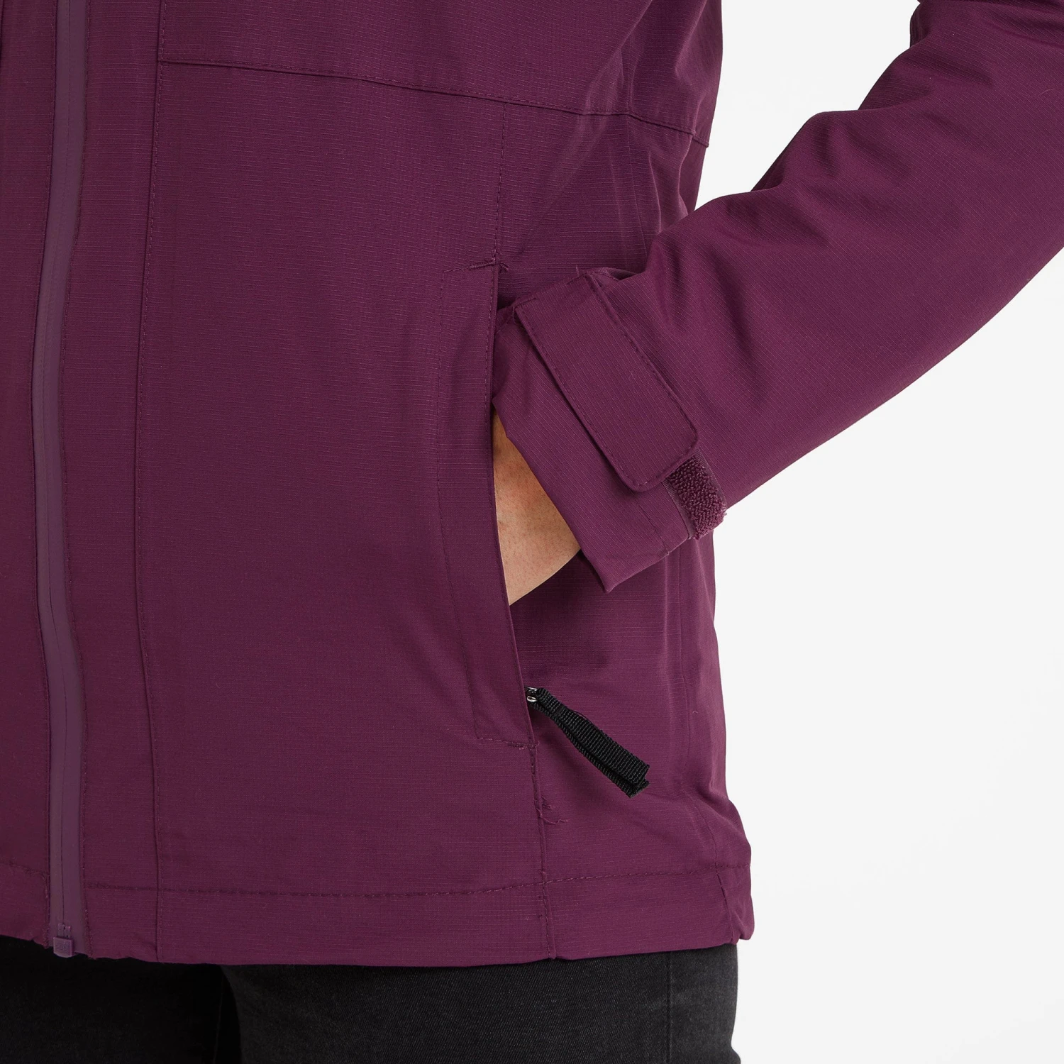 Exposed waterproof front zip