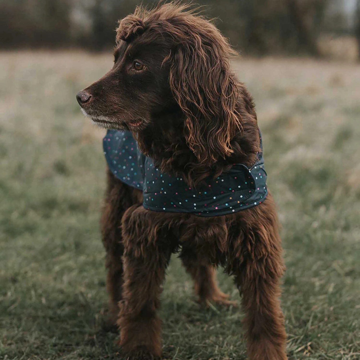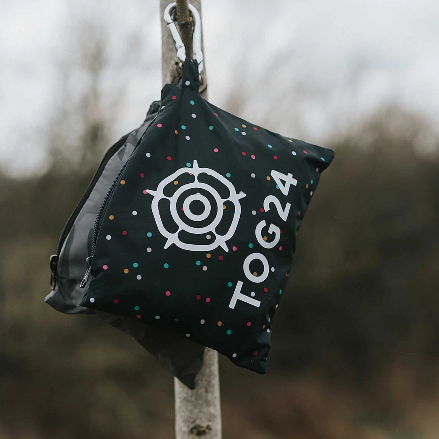 Water resistant and lightweight, our dog coat Hound keeps your four-legged friend dry when the rain starts to pour. Designed with convenience in mind, the jacket packs away into its own small bag when not in use. A handy cut-out at the back of the neck means it’s easy to attach a lead without removing the coat. Whether you’re planning a long walk across the Yorkshire countryside or a quick stroll around the block, this practical jacket keeps your dog dry. A wide Velcro strap underneath the dog’s tummy means the coat fits your dog comfortably. The finishing touch is discreet TOG24 branding on the neck of the coat and a rubber TOG24 badge on the back.