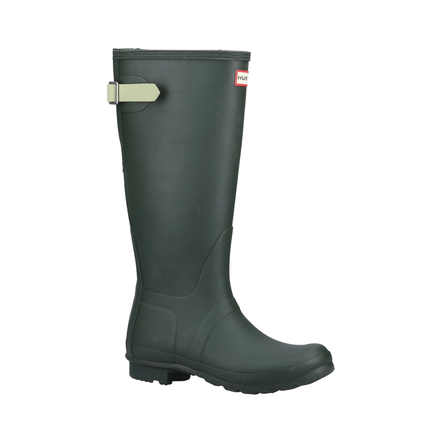 The Hunter Original Adjustable Wellington is handcrafted from natural vulcanised rubber with a matte finish. Each iconic welly features a polyester lining, a non-slip rubber outsole, and an adjustable back strap for a comfortable fit