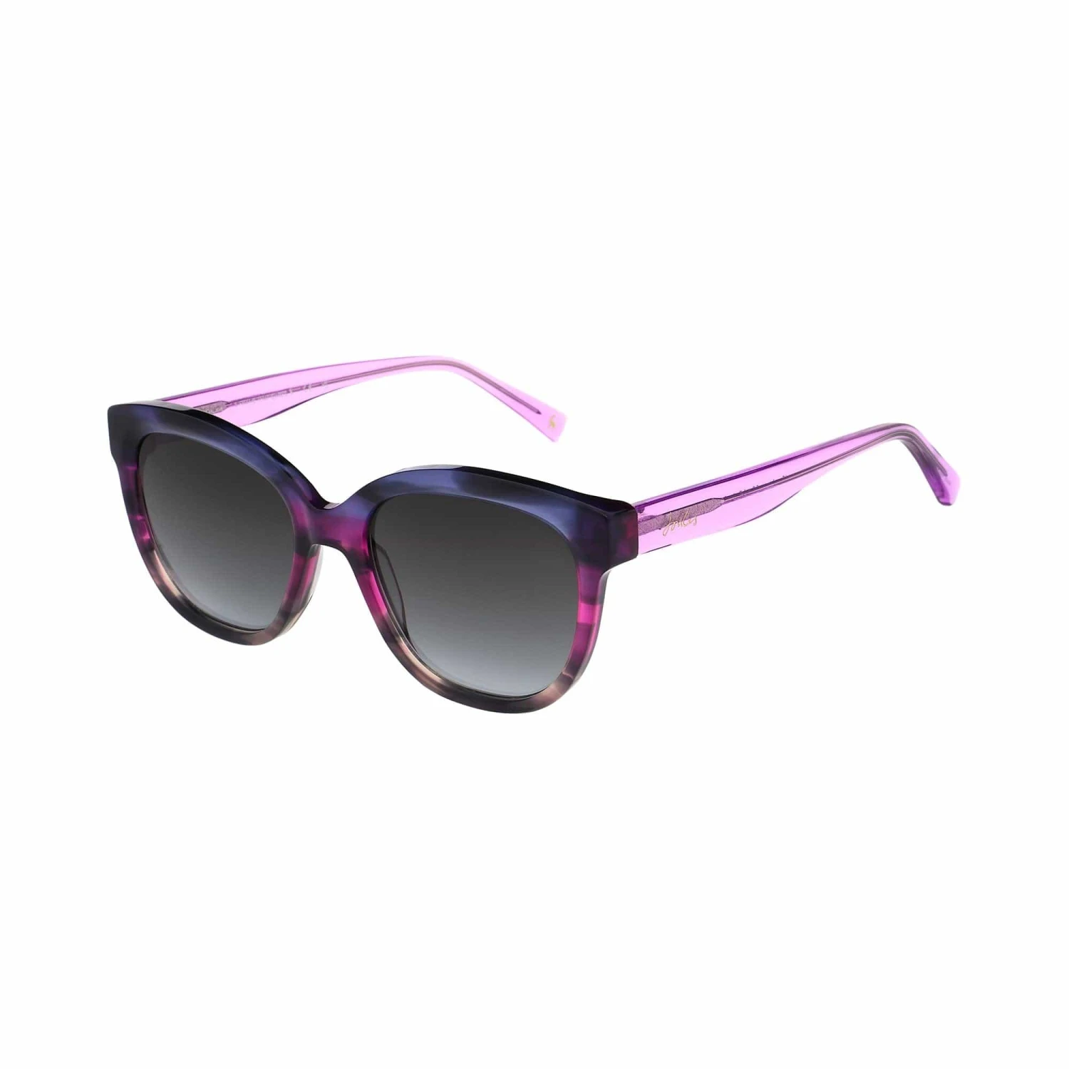 Joules brings you this easy to wear pair of sunglasses in a beautiful graduated, soft blue and purple horn finish, complemented by grey graduated lenses and crystal mauve temples