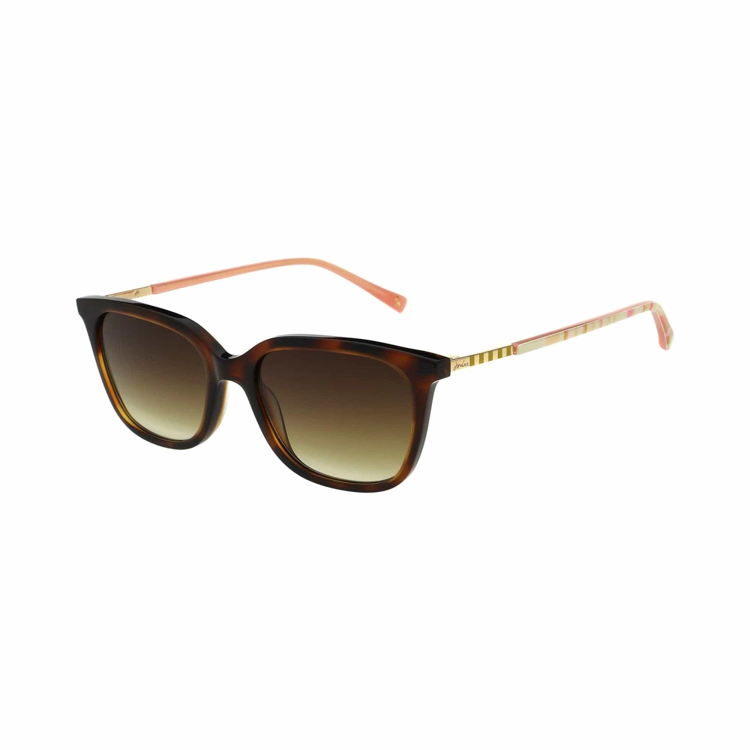 Joules brings you a classic tortoiseshell sunglass with a really pretty striped combination temple