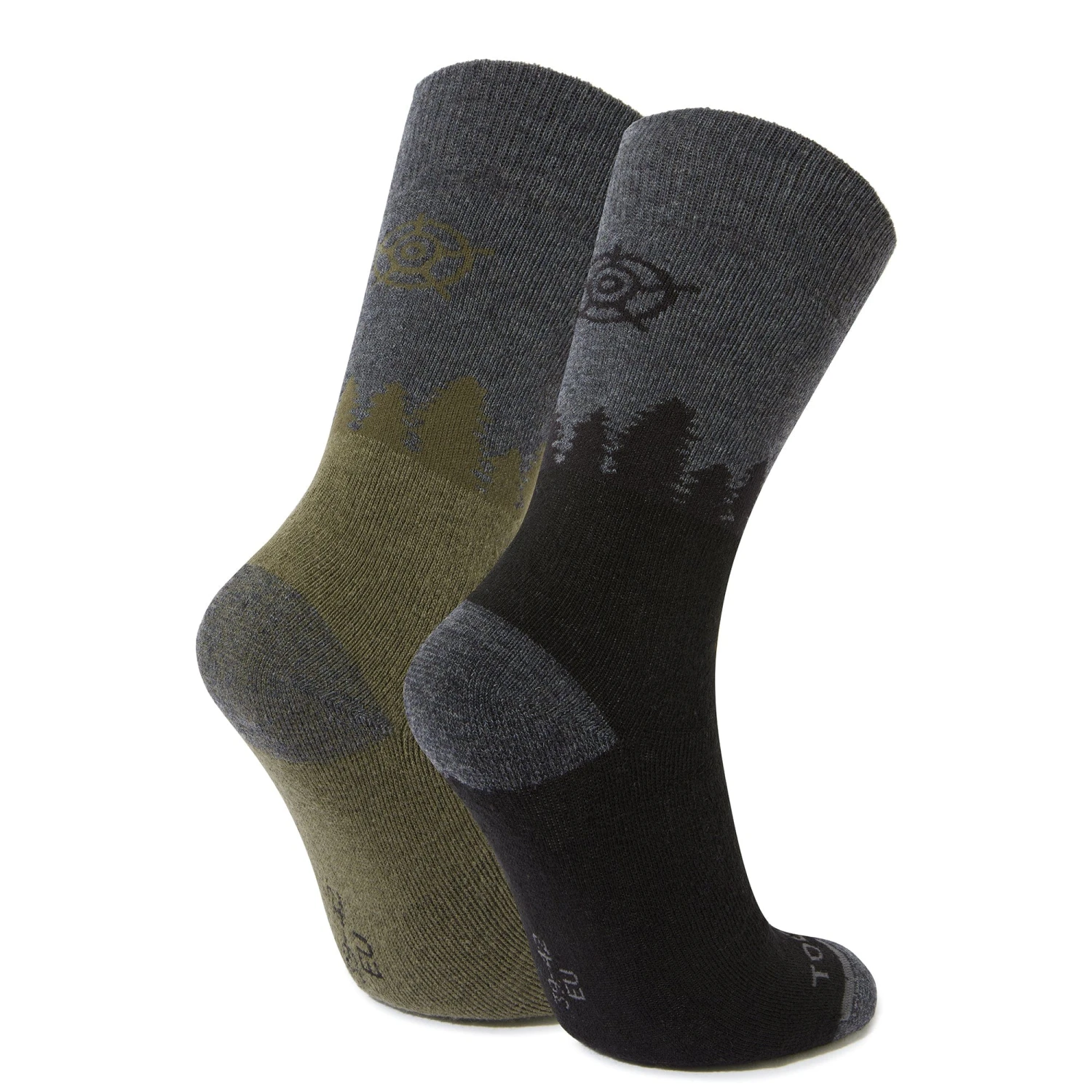 Krems hiking socks feature a nature inspired woodland design making these a pair of socks that look as good as they feel. These are socks that offer great comfort for your foot. Features include a non-slip grip cuff that will keep your socks firmly in place, a re-inforced toe and heel section , elastic arch support and a flat toe seam to keep them comfy against the front of your shoe or boot. Made from a merino blend fabric and with cushioning across the whole sock offering all over comfort and protection and won’t cause rubbing or discomfort even if you wearing heavy or wet walking boots.