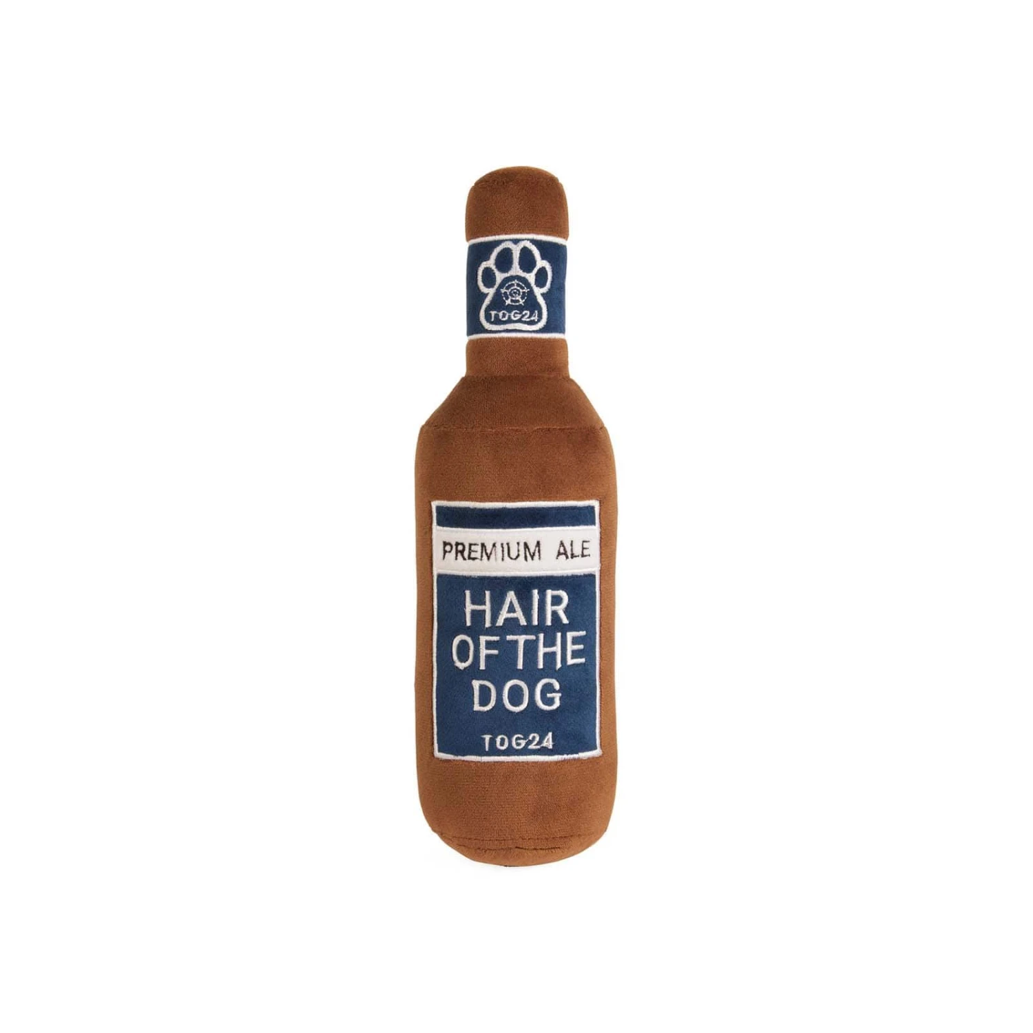 Soft, squeaky and lots of fun, our Lager dog toy is a plush, playful accessory for dogs of all ages. Made from velvety smooth fabric, it is safe for puppies and grown-up dogs to enjoy. Cleverly designed to look like a bottle of premium Yorkshire ale with a witty ‘hair of the dog’ slogan, this novelty beer dog toy provides hours of fun. Designed to get tails wagging, this toy is an ideal gift for dogs of all shapes and size. Welcome a friend’s new pup or treat your own pet to this wonderfully soft and squeaky accessory. Clever finishing includes a TOG24 paw print logo with a rose at its centre integrated into the bottle’s branding.