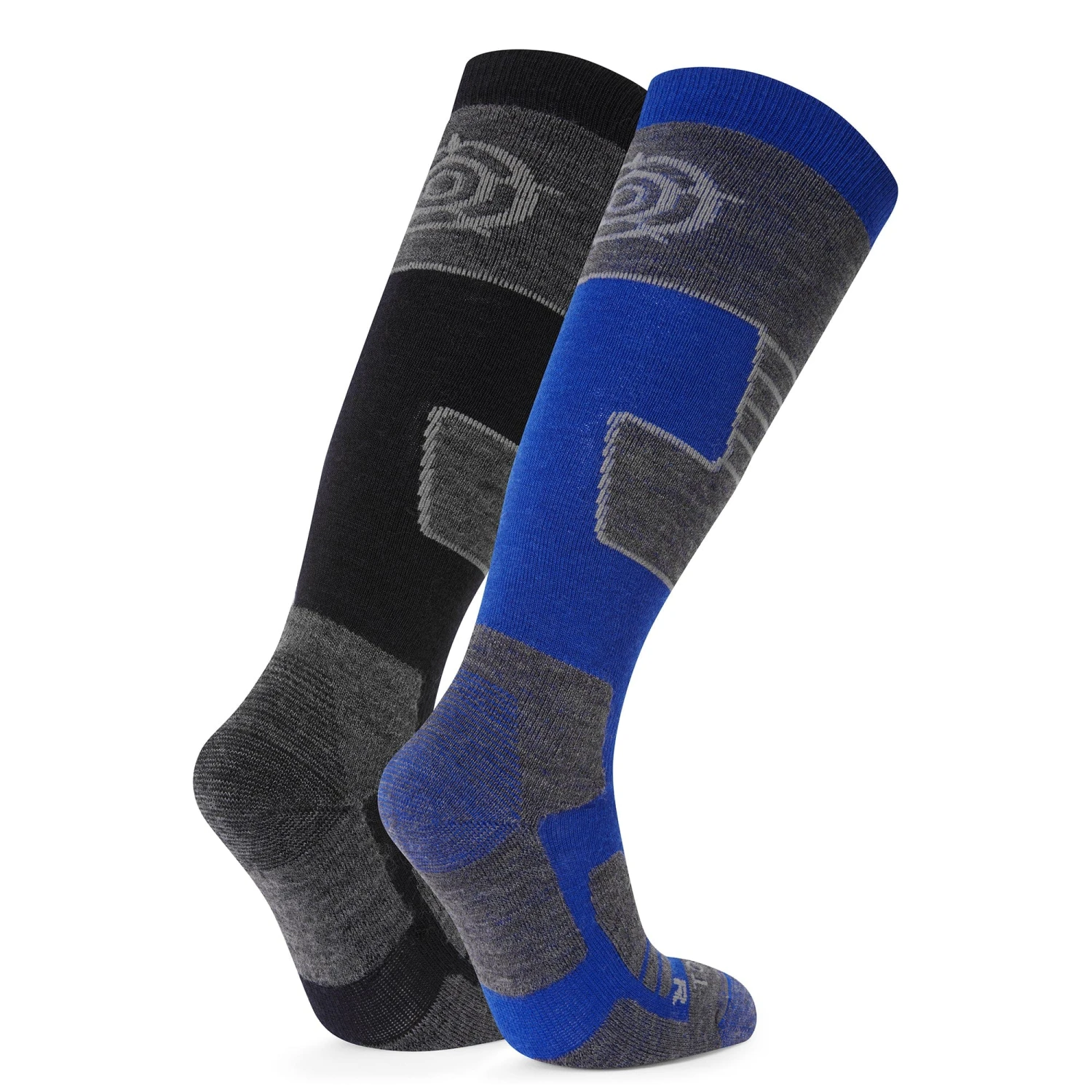 Our Linz Ski Socks are the last word in ski sock design. A left-right design means these ski socks are fitted to each individual foot for the ultimate in fit and control. Made of a super cosy, merino fabric blend and with key sections of the sock cushioned, they are a delightful pair of socks to wear. Padding has been added to high-friction areas to prevent blistering but applied only in key areas to keep bulk and weight to an absolute minimum. A non-slip grip cuff, elastic arch and ankle support and a flat toe seam are all features designed to perfectly balance performance and comfort. Available in a range of colours and patterns, these socks will leave you feeling as great as you look.