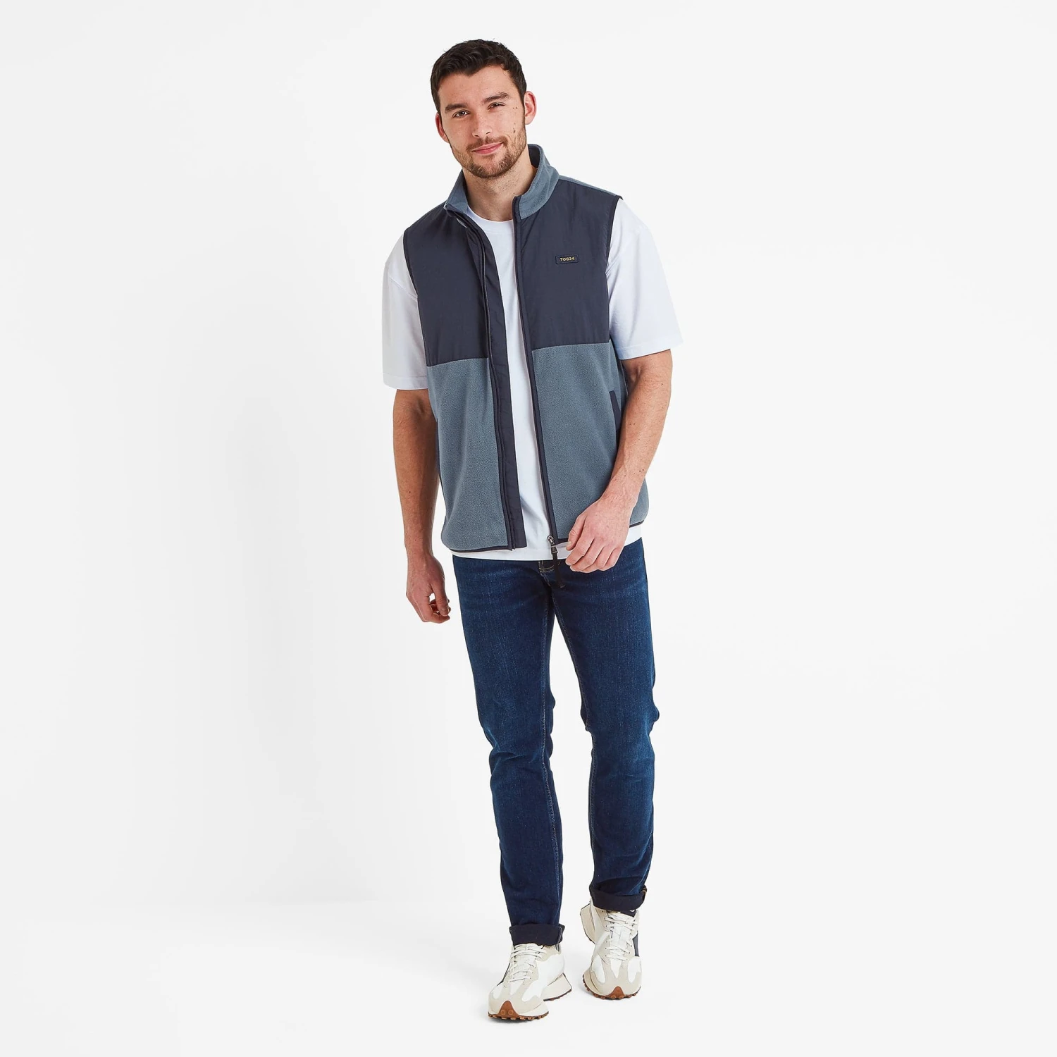 Studio model Joe is wearing size M and is 6’1″, chest 40″, waist 31″
