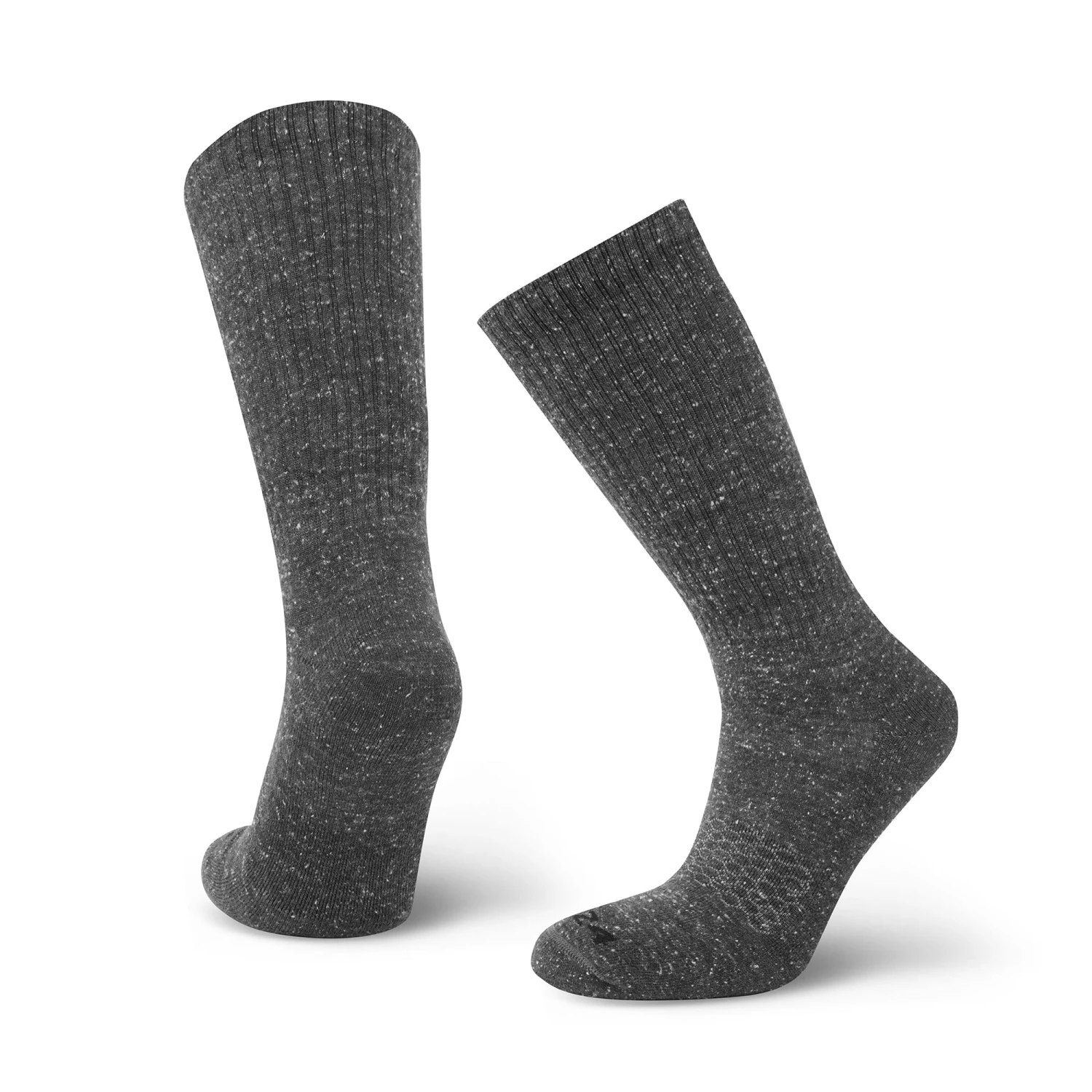 Ideal for walking holidays or a once in a lifetime hiking expedition, our Fern trek socks are the perfect fit. Thick padding all over the sock locks in warmth and helps reduce rubbing and chafing when wearing bulky hiking boots. Mesh knit detailing on the top of the foot means better breathability for hardworking feet that stay fresh and dry all day long. Designed with comfort in mind, Fern socks are elasticated around the leg and underneath the arches in your feet for extra support when you want to go the distance. The reinforced toe and heel means these socks can be worn and washed repeatedly, without compromising performance. The finishing touch, soft grip cuffs that gently hold the socks in place without being too tight or restrictive.