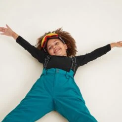 Packed with technical features, our high performance Pateley salopettes for kids come in a tough, durable fabric that is fully waterproof, breathable and windproof, keeping them dry and comfortable on the slopes all day long. These robust ski and snowboard trousers have fully taped seams and an invisible water repellent coating, so rain simply beads off, and there are snow gaiters inside the legs to stop the white stuff getting in if they take a tumble trying out new moves. They are also extremely warm and cosy thanks to a lightweight eco-friendly insulating filling that gives outstanding warmth without adding bulk. Designed by our team in West Yorkshire with all the bells and whistles, Pateley ski pants have detachable, elasticated adjustable stretchy braces and an elasticated waist that fastens with press studs and hook and bar. The lower legs are reinforced with durable fabric to reduce damage from ski boots and there are also two angled hip pockets plus a pocket at the back for sto
