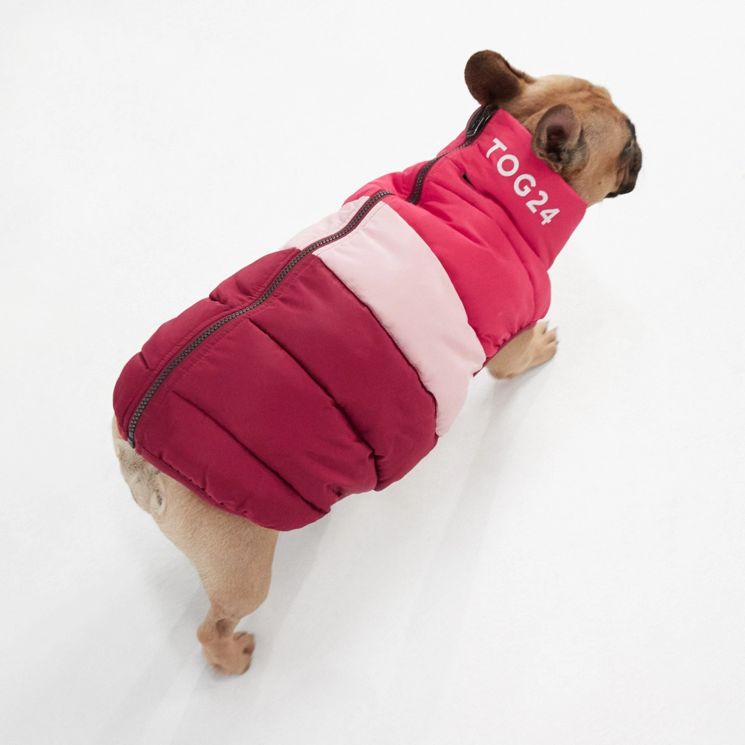 Insulated for warmth and comfort, our Pooch coat for dogs keeps your pet cosy on cold winter walks. This stylish jacket is lightweight with a full length zip to make putting it on your dog stress-free. The reversible design has a reflective option so that your dog can be seen by cars and cyclists on dark early morning walks in the winter. A cut-out in the neck conveniently allows you to attach a lead while your dog is wearing the jacket. The colourblock pattern in tones inspired by the Yorkshire landscape with TOG24 printed on the neck gives the coat a sporty look both you and your canine companion will love.