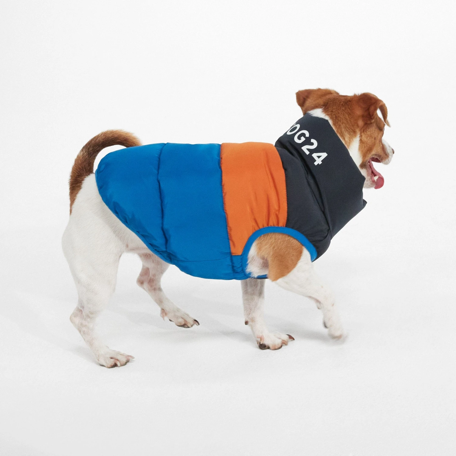 Insulated for warmth and comfort, our Pooch coat for dogs keeps your pet cosy on cold winter walks. This stylish jacket is lightweight with a full length zip to make putting it on your dog stress-free. The reversible design has a reflective option so that your dog can be seen by cars and cyclists on dark early morning walks in the winter. A cut-out in the neck conveniently allows you to attach a lead while your dog is wearing the jacket. The colourblock pattern in tones inspired by the Yorkshire landscape with TOG24 printed on the neck gives the coat a sporty look both you and your canine companion will love.