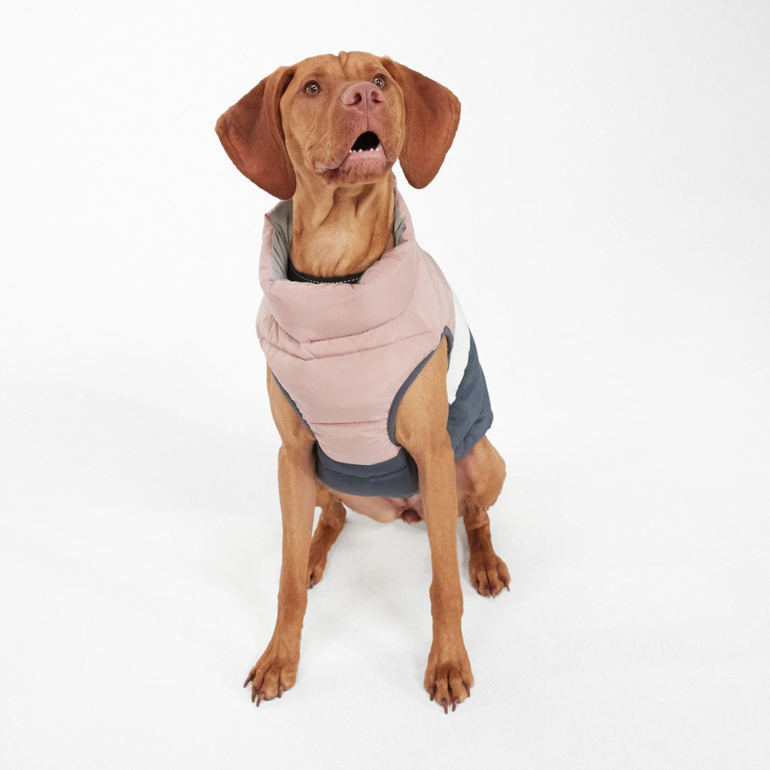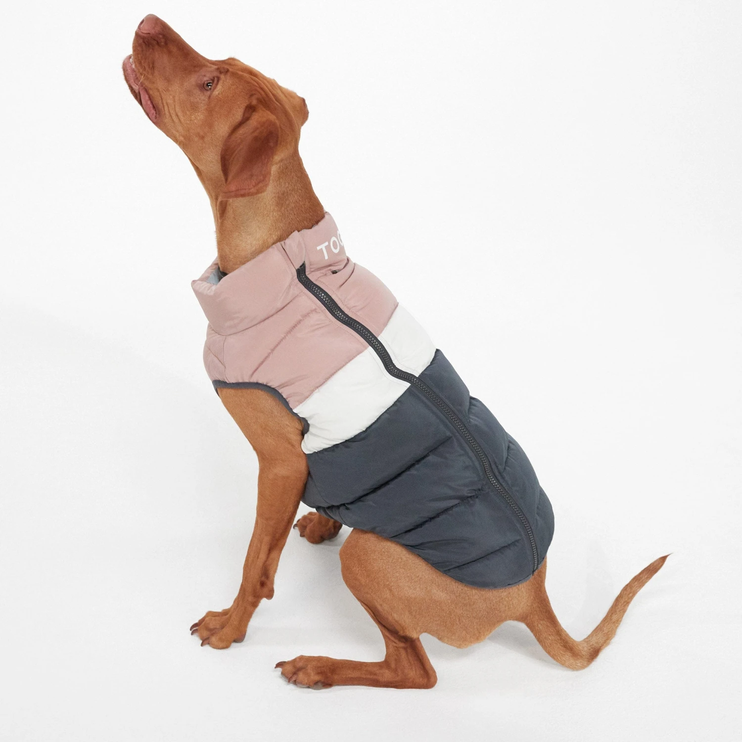 Insulated for warmth and comfort, our Pooch coat for dogs keeps your pet cosy on cold winter walks. This stylish jacket is lightweight with a full length zip to make putting it on your dog stress-free. The reversible design has a reflective option so that your dog can be seen by cars and cyclists on dark early morning walks in the winter. A cut-out in the neck conveniently allows you to attach a lead while your dog is wearing the jacket. The colourblock pattern in tones inspired by the Yorkshire landscape with TOG24 printed on the neck gives the coat a sporty look both you and your canine companion will love.