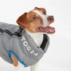 Insulated for warmth and comfort, our Pooch coat for dogs keeps your pet cosy on cold winter walks. This stylish jacket is lightweight with a full length zip to make putting it on your dog stress-free. The reversible design has a reflective option so that your dog can be seen by cars and cyclists on dark early morning walks in the winter. A cut-out in the neck conveniently allows you to attach a lead while your dog is wearing the jacket. The colourblock pattern in tones inspired by the Yorkshire landscape with TOG24 printed on the neck gives the coat a sporty look both you and your canine companion will love.