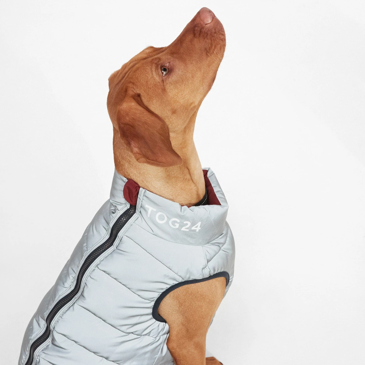 Insulated for warmth and comfort, our Pooch coat for dogs keeps your pet cosy on cold winter walks. This stylish jacket is lightweight with a full length zip to make putting it on your dog stress-free. The reversible design has a reflective option so that your dog can be seen by cars and cyclists on dark early morning walks in the winter. A cut-out in the neck conveniently allows you to attach a lead while your dog is wearing the jacket. The colourblock pattern in tones inspired by the Yorkshire landscape with TOG24 printed on the neck gives the coat a sporty look both you and your canine companion will love.