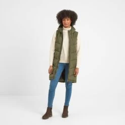 When it’s cold and windy, but you need your arms free for a full range of movement, our Ranskill extra long padded gilet is just the job. Ranskill is quilted in a chunky, but flattering, chevron design and thickly padded with a warm, insulated eco filling. The soft and cosy fixed hood can be adjusted with dyed to match chunky drawcords for a custom fit. Designed by our team in West Yorkshire to be robust enough to stand up to everyday wear, Ranskill has a full length two-way zip secured with press studs, making it easy to slip on and off, and two cosy lower zip up pockets with chunky pullers that can double up as hand warmers if you forget your gloves. Ranskill comes in colours inspired by the natural beauty of Yorkshire and the finishing touch is our signature TOG24 embroidered logo on the pocket.