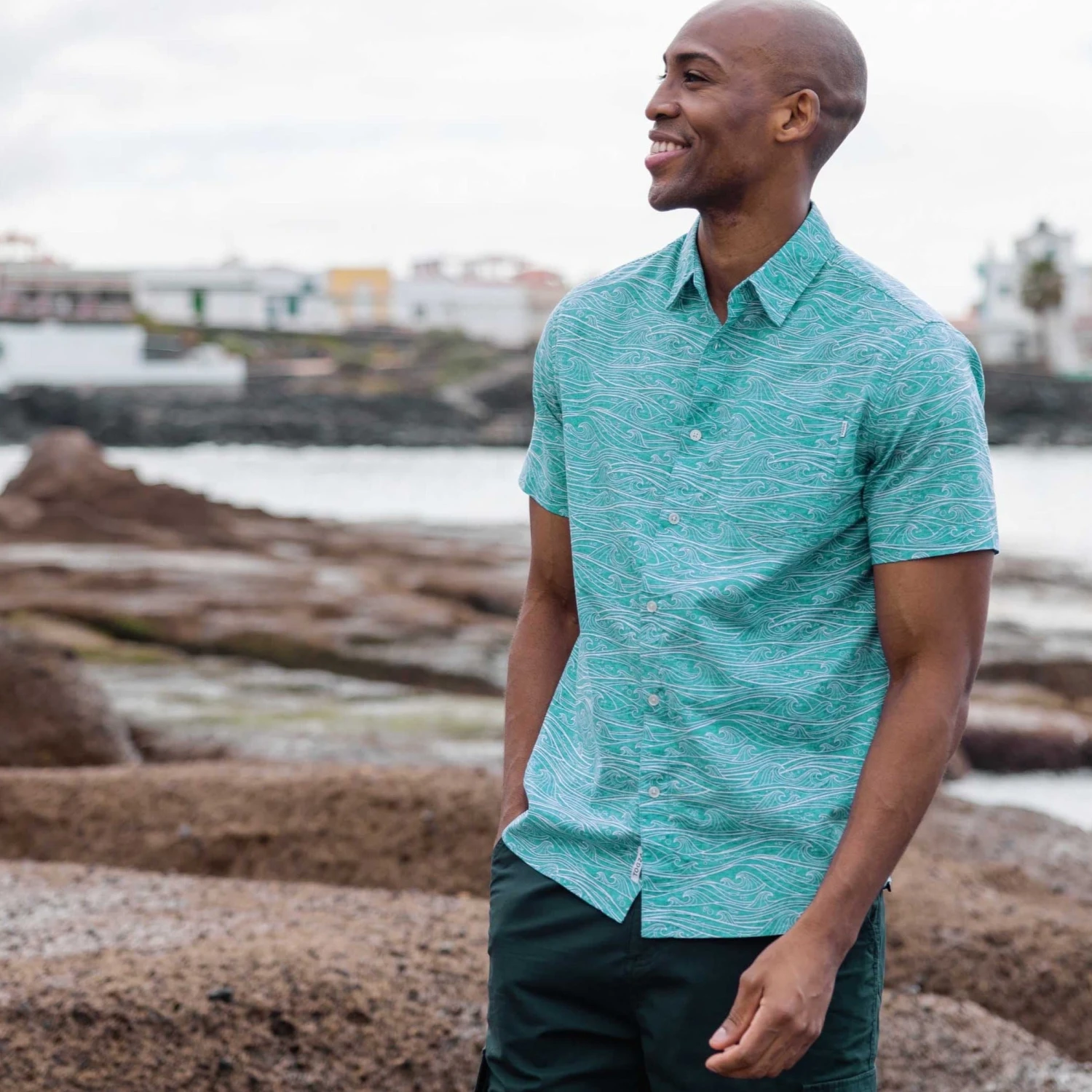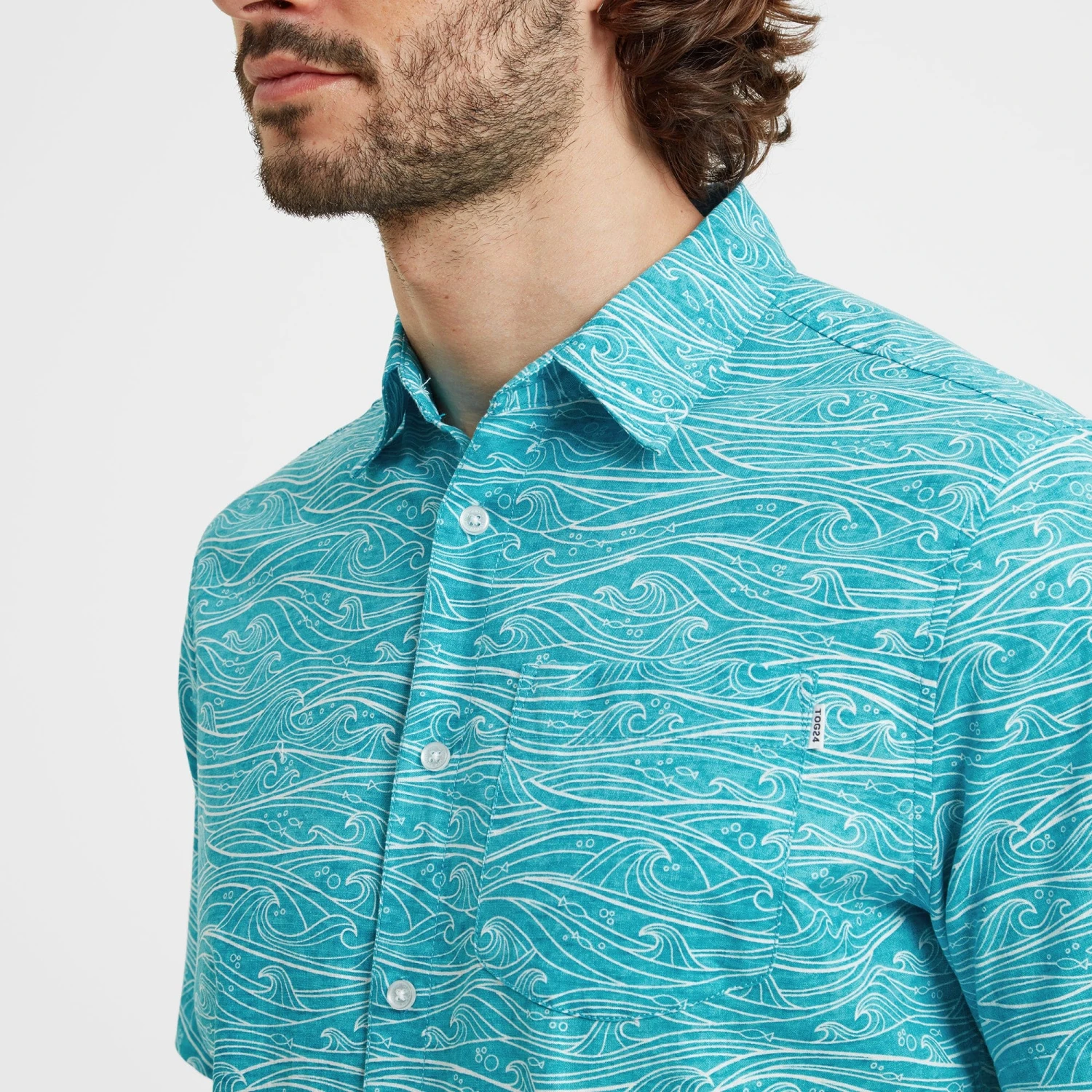 Update your holiday wardrobe with our Sebastian short sleeve shirt for men in a supersoft 100% cotton fabric. With its rolling waves and subtle fish motif, the marine-inspired print elevates this shirt out of the ordinary. Combine with shorts and boat shoes for a fresh, breezy style that wouldn’t look out of place in the South of France. Designed by the our team in West Yorkshire, this relaxed shirt looks just as good paired with chinos or jeans for a stroll around Whitby Harbour. Vibrant, versatile and oh-so-easy to wear, Sebastian has pleats in the back for all-day comfort and ease of movement. A patch pocket on the chest adds interest and detail, while subtle branding on the buttons and small TOG24 woven labels on the pocket and hem add those crucial finishing touches.