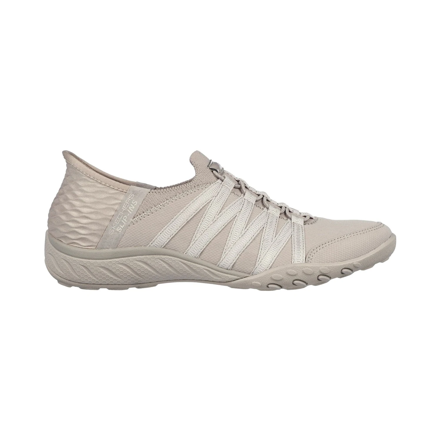 Simply step-in and go with comfort and style wearing Skechers Hands Free Slip-ins Relaxed Fit: Breathe-Easy – Roll-With-Me. This casual style features a soft knit mesh upper and a cushioned Skechers Air-Cooled Memory Foam® insole.