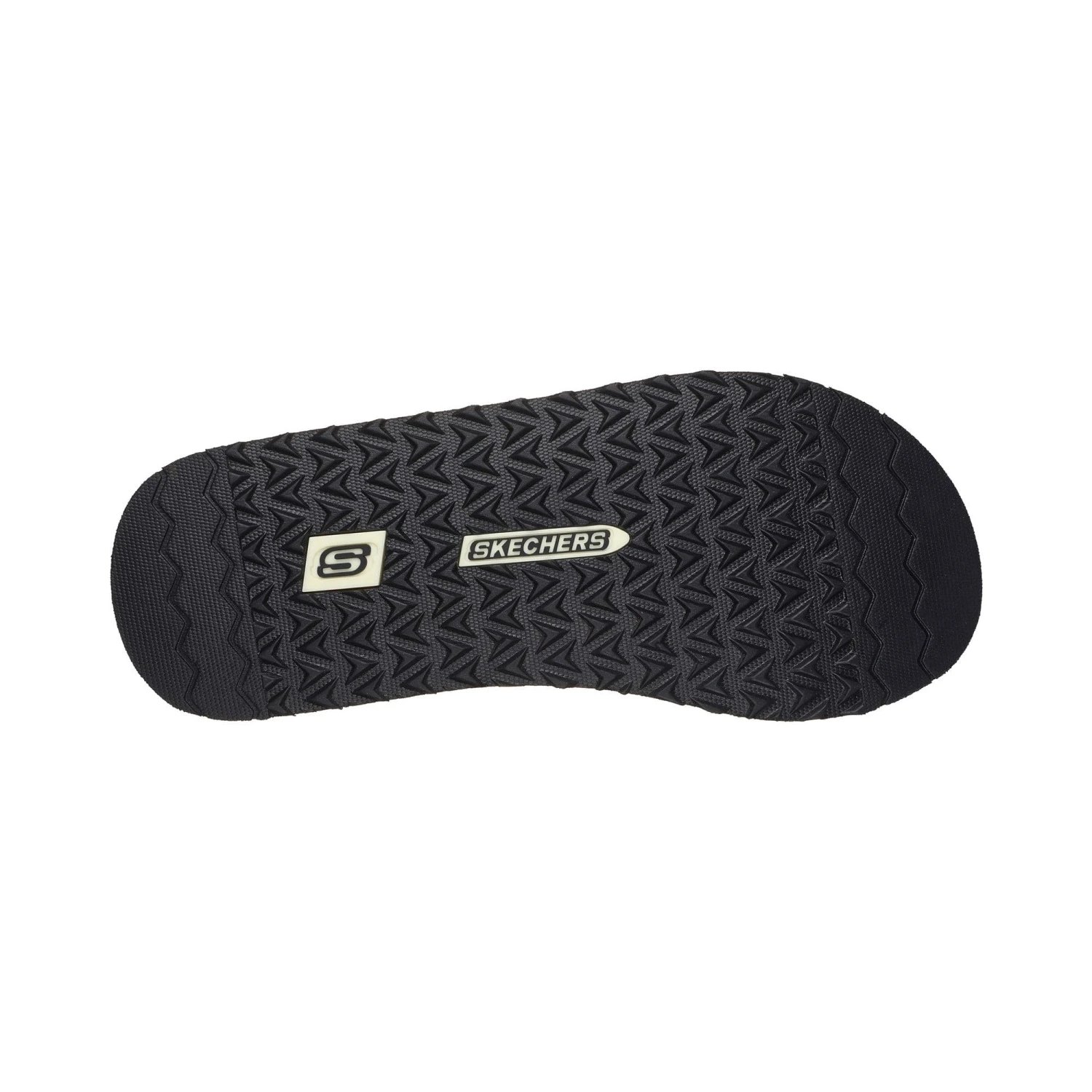 Bring on the sand, surf, and sun in Skechers Patino – Marlee. This casual 3-point thong sandal features a frayed canvas upper with a faux woodgrain and sports stripe detailed midsole.
