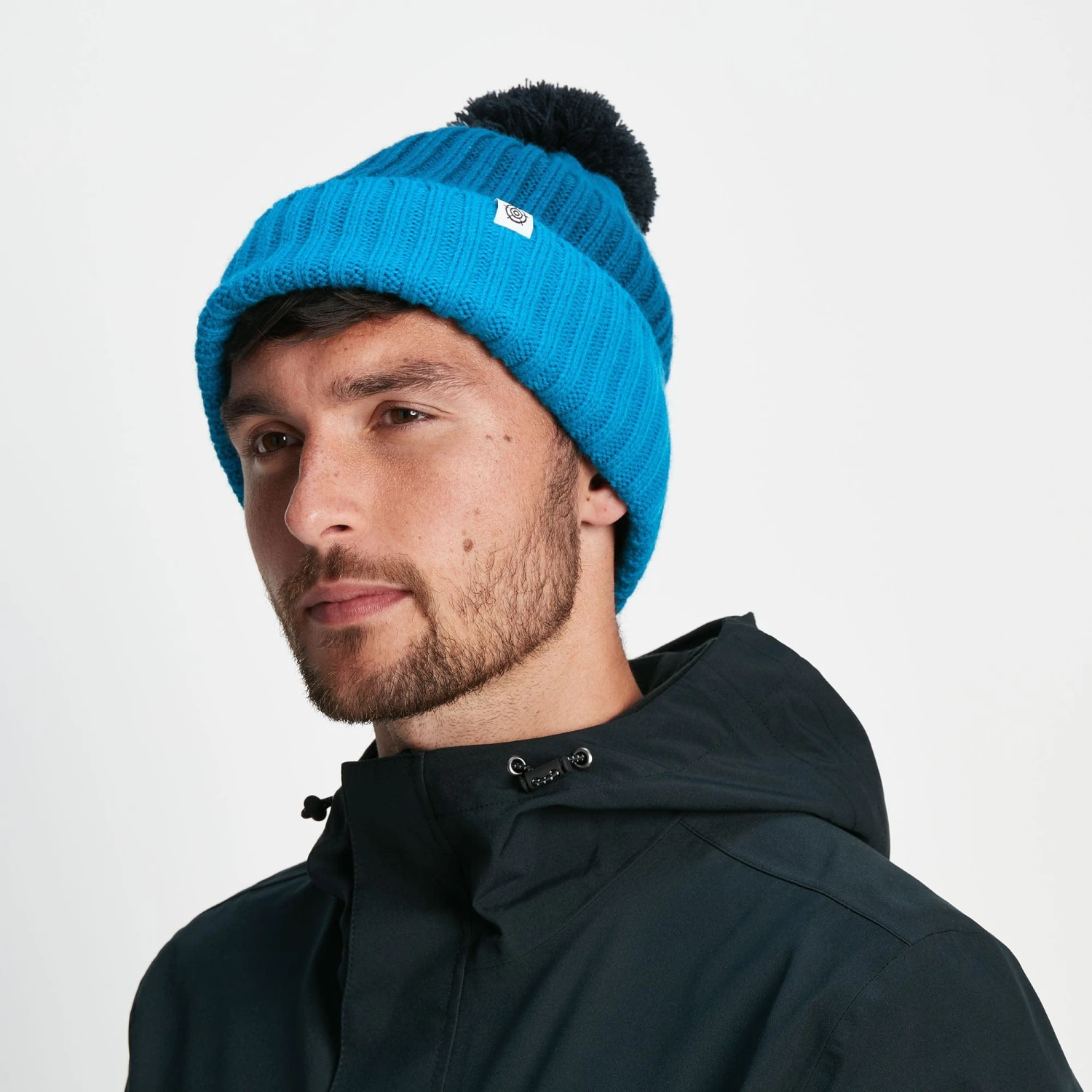 Chunky rib knit bobble hat