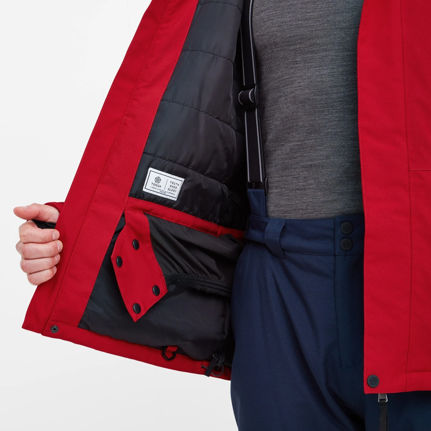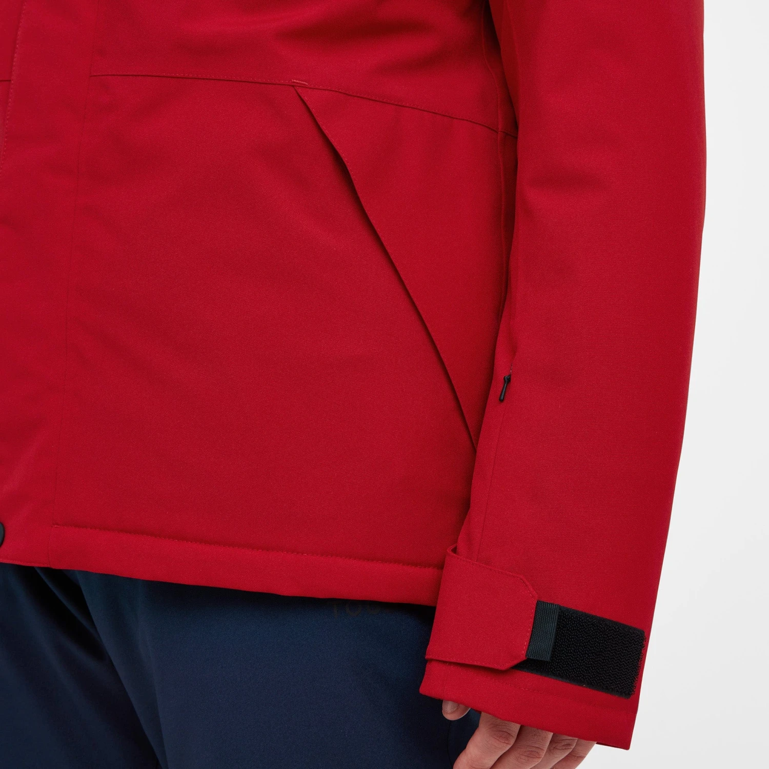 Waterproof, windproof, fully breathable and insulated, our Stratus ski jacket keeps you warm and fully protected from the elements on and off the slopes. It comes in a durable fabric with an invisible water repellent coating, so that rain beads off, and taped seams to stop water getting in. When you’re up a mountain, you’ll appreciate all the features that enhance life on the slopes, including a lift pass pocket on the sleeve, a goggle wipe inside and two lower zip up pockets for storing your valuables. An inner snowskirt stops the white stuff going up your back in a fall and at the wrists there are soft, stretchy snow cuffs with discreet thumbholes to fill the gap between jacket and gloves. When you’re not wearing them, your gloves can be attached to the D ring at the hem. The detachable hood fits over a helmet, but when you take the helmet off, you can adjust it at the front and back to keep the wind and rain out. The hood has a zip and poppers at the back, so take it off any time to