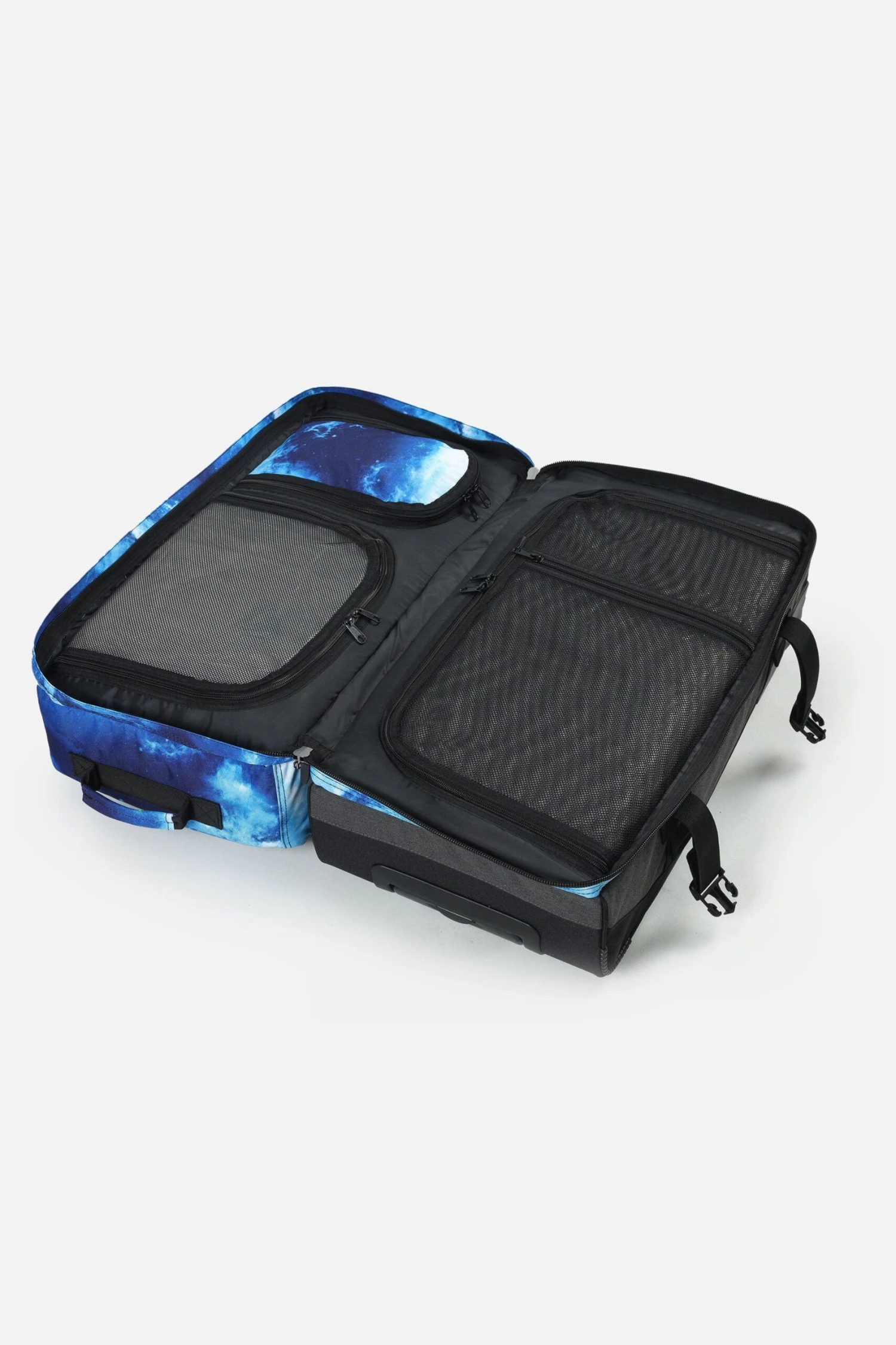 The New Maxim 2.0 70-litre roller bag Is the perfect workhorse for all your travel needs. Lightweight at 3.6 kgs but built to last for years coming with a 2-year guarantee. This bag is constructed from a durable, waterproof, heavy-duty 600D polyester and is reinforced where it matters. Feature packed with strong chunky lockable zippers, a strong lightweight aluminium drag handle, premium low-noise integrated wheels, grab handles, separate compartments, 4-way compression straps and a kick plate. There are many benefits to using the multi-compartment split-level roller design over traditional hard shell suitcases including the ease of travelling around outside airports, organising your kit, keeping wet away from dry and dirty away from clean, packing the soft bag into transport and the versatile compression straps for smaller loads that keep your stuff locked down for safety and stop your kit arriving looking like you’ve slept in it. These roller bags are a portable storage solution for