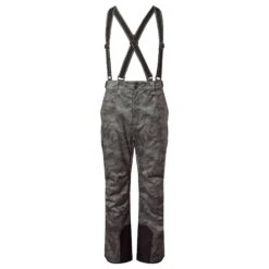Designed to keep you dry and comfortable on the slopes all day long, our Tempest salopettes come in a tough, durable fabric that is fully waterproof, breathable and windproof. These robust skiing and snowboarding trousers have an adjustable waist and zip fly with press stud and hook and bar fastening and are lightly padded with thin insulation made from recycled plastic bottles (PET polyester 100%) to reduce landfill. Designed by our team in West Yorkshire in a bold camo print in colours inspired by the rugged landscape that surrounds us, Tempest ski pants have all the top technical features. These include detachable, elasticated fully adjustable braces, inner leg zips that open for ventilation, reinforced panels at the lower legs to prevent damage from ski boots and hem zips that make them easy to slip on over your boots. If you do take a tumble, the internal gaiters will keep out the snow. The finishing touches are two zip-up hip pockets, a handy patch pocket on the leg and a discree