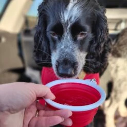 Keep your dog fed and watered anywhere with our Thirsty dog bowl. Designed with convenience in mind and made from flexible yet durable material, the bowl collapses flat, perfect for travelling light with your dog in tow. A handy karabiner slot means the bowl can be attached easily to any rucksack or bag and taken with you on long coastal walks or a hike across the Yorkshire Moors. Featuring an amusing slogan printed on the inside of the bowl, this essential piece of canine kit is fun and practical. A TOG24 branded paw print on the base of the bowl is the perfect finishing touch.