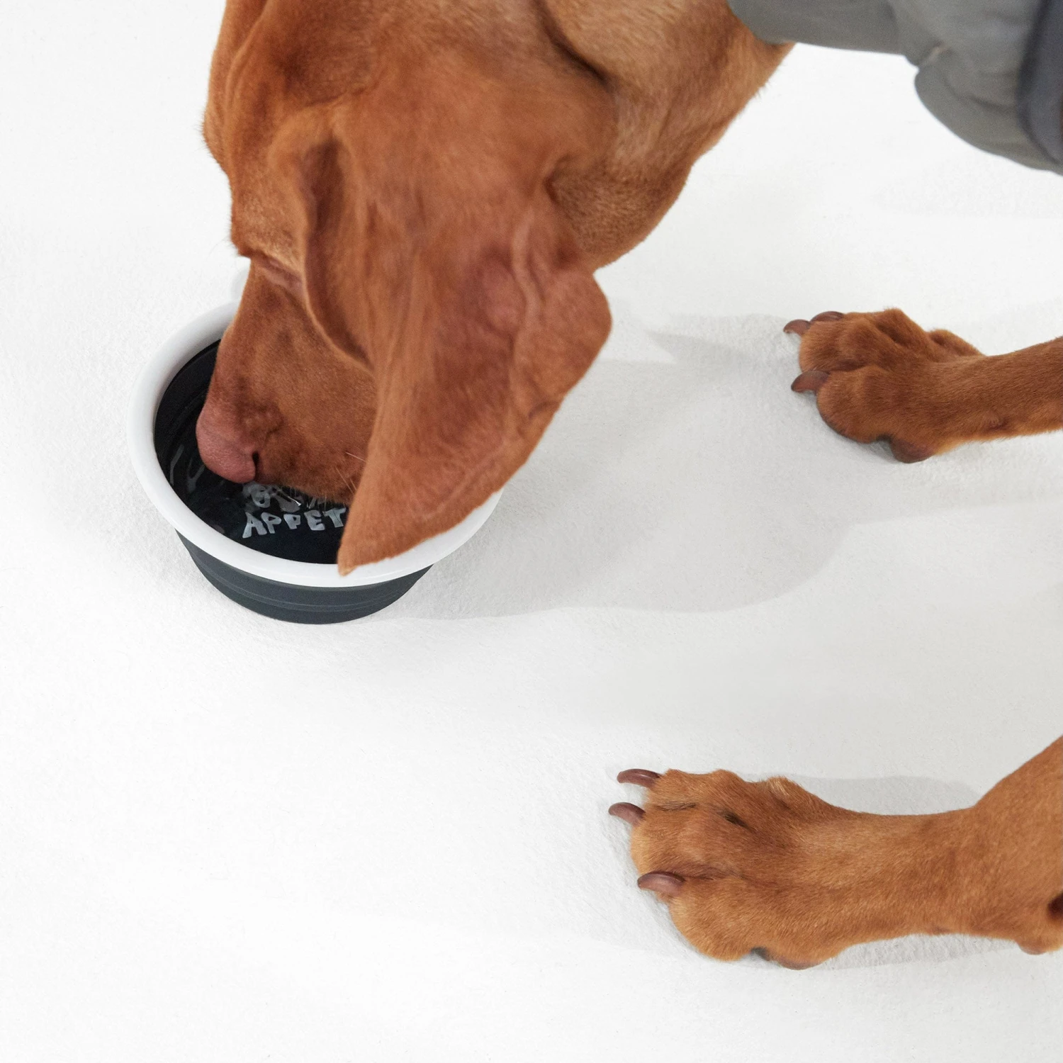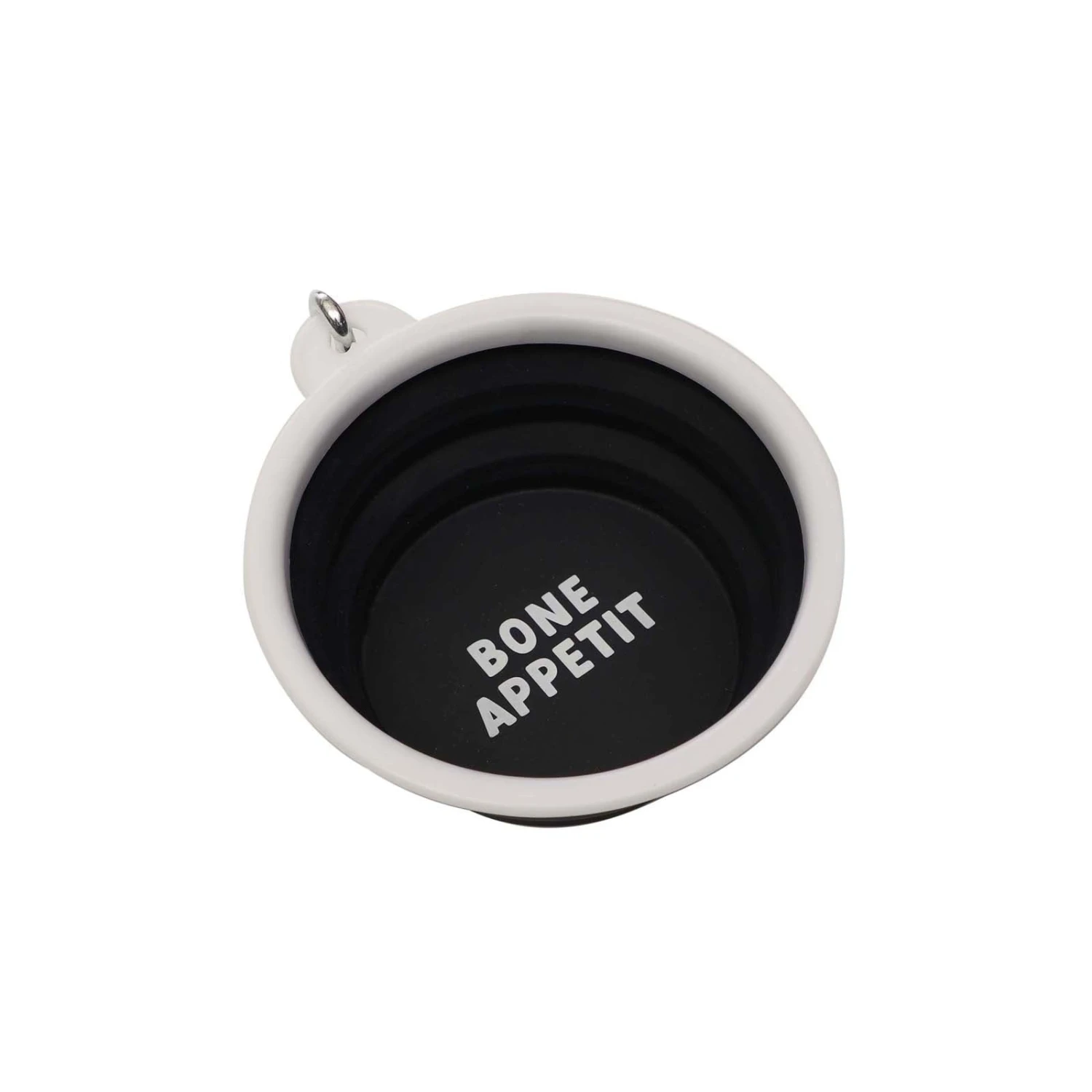 Keep your dog fed and watered anywhere with our Thirsty dog bowl. Designed with convenience in mind and made from flexible yet durable material, the bowl collapses flat, perfect for travelling light with your dog in tow. A handy karabiner slot means the bowl can be attached easily to any rucksack or bag and taken with you on long coastal walks or a hike across the Yorkshire Moors. Featuring an amusing slogan printed on the inside of the bowl, this essential piece of canine kit is fun and practical. A TOG24 branded paw print on the base of the bowl is the perfect finishing touch.