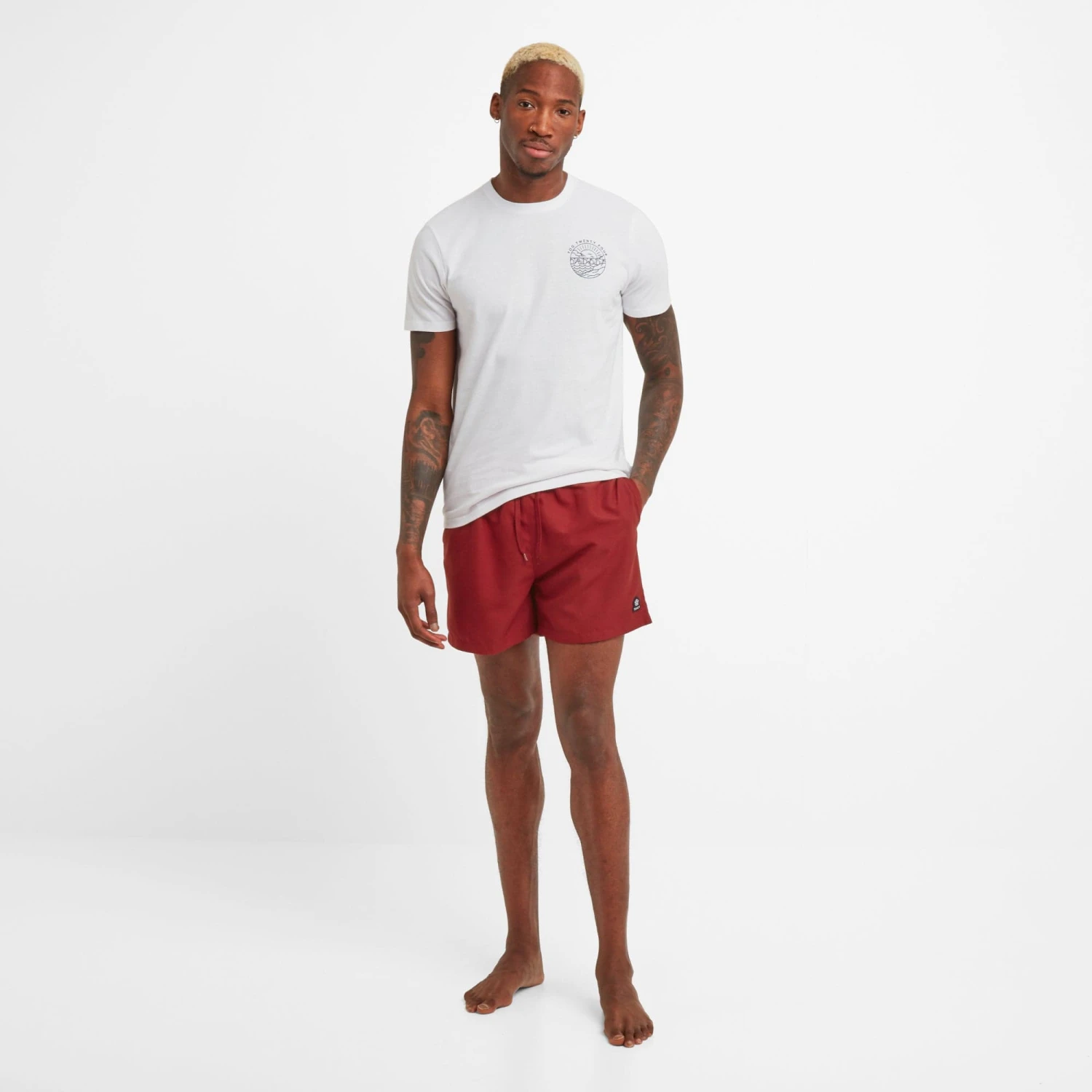 Built to last, quick to dry and eco-friendly, our Tristan swim shorts have all the credentials you need to be beach and pool ready. These classic bathers come in a range of fun, seaside colours inspired by a trip to Whitby Bay in Yorkshire and are made from a lightweight, 100% recycled water-repellent fabric. Tristan swimming trunks have a supersoft inner mesh brief for all day comfort and an elasticated drawstring waist for a secure, custom fit. You’ll find two handy pockets at the hip as well as an extra pocket at the back to store your essentials. Designed by our team in West Yorkshire, they are finished with our signature embroidered Yorkshire Rose badge just above the hem.