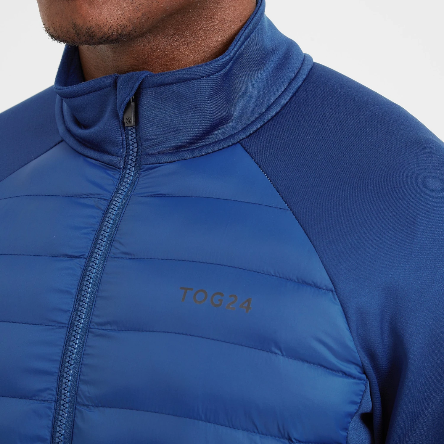 Providing warmth without the bulk, our Vasey lightweight padded jacket combines a soft and stretchy back and sleeves with a cosy, quilted body, making it the perfect mid layer for all seasons. Throw yours on over gym clothes or to go for a brisk walk across the Yorkshire moors. The flexible back and sleeves give you a greater range of movement during high energy activities and the quilted front, insulated with an eco-friendly filling made from recycled plastic bottles, will keep you toasty warm. If you get too hot, this hybrid jacket compresses down small, so it will fit into a rucksack for easy storage. Vasey comes in deep colours and textures inspired by the rugged Yorkshire landscape, where this versatile jacket was designed. The finishing touch is a tonal TOG24 logo printed on the chest and our signature embossed rubber Yorkshire Rose badge on the sleeve.