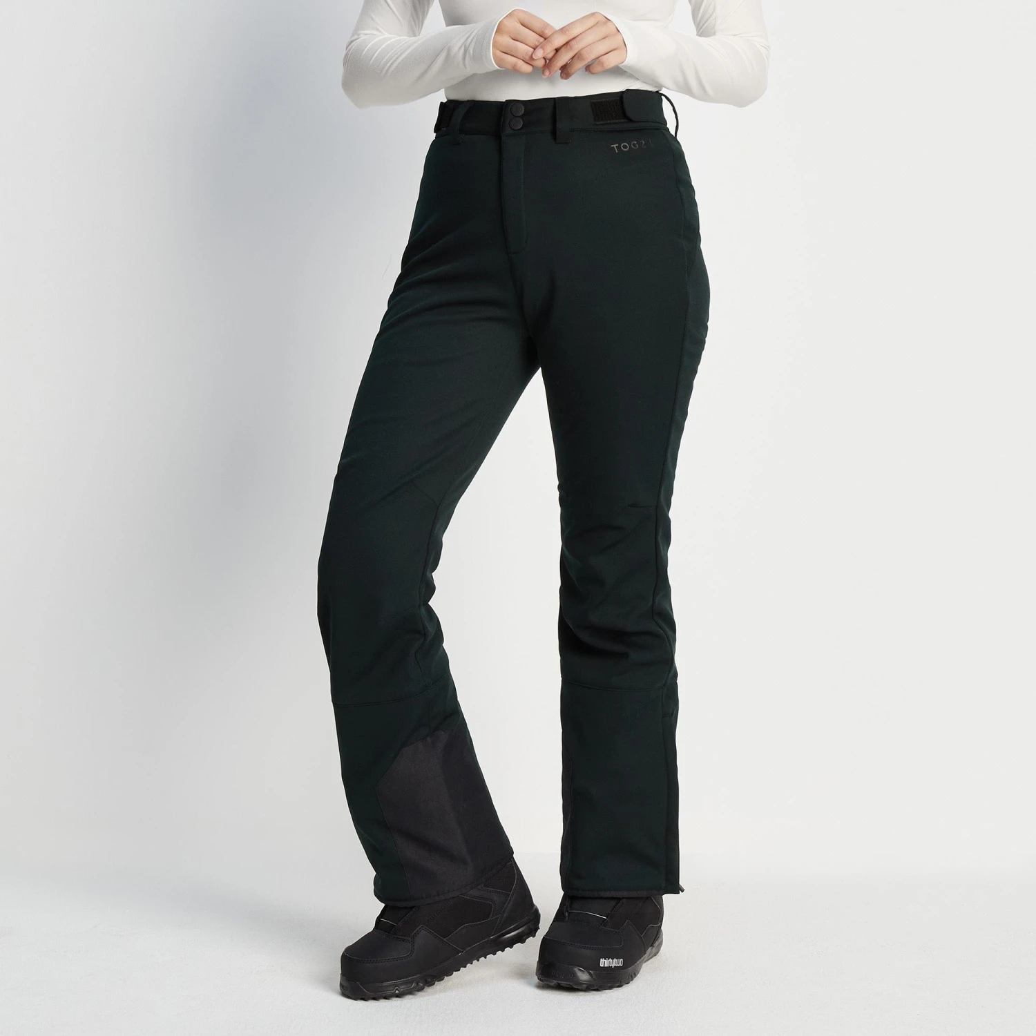 Our Vista women’s salopettes are a great addition to any winter kit. Designed to withstand moisture and wind, our Vista women’s trousers are great for sunny days out on the slopes or a day of walking in frigid weather. With a lightly flared shape, these salopettes can be easily worn over ski boots and be adjusted at the waist and ankles for an optimum fit. On the outside you’ll find a softshell stretch finish which is lined with a bonded microfleece on the inside for added warmth. Knee darts and a zip opening on the hem allow for extra freedom of movement without the risk of tears, while the inner snow gaiters keep snow from seeping into your boots and onto your thermals.
